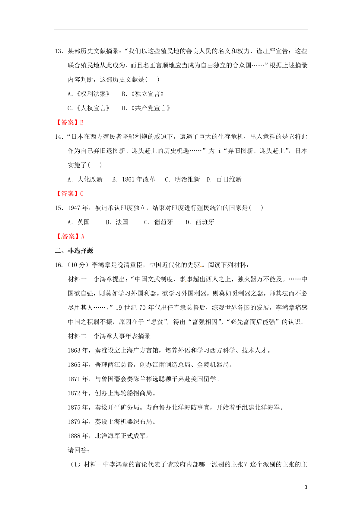3.广西柳州市2015年中考历史真题试题(含答案)