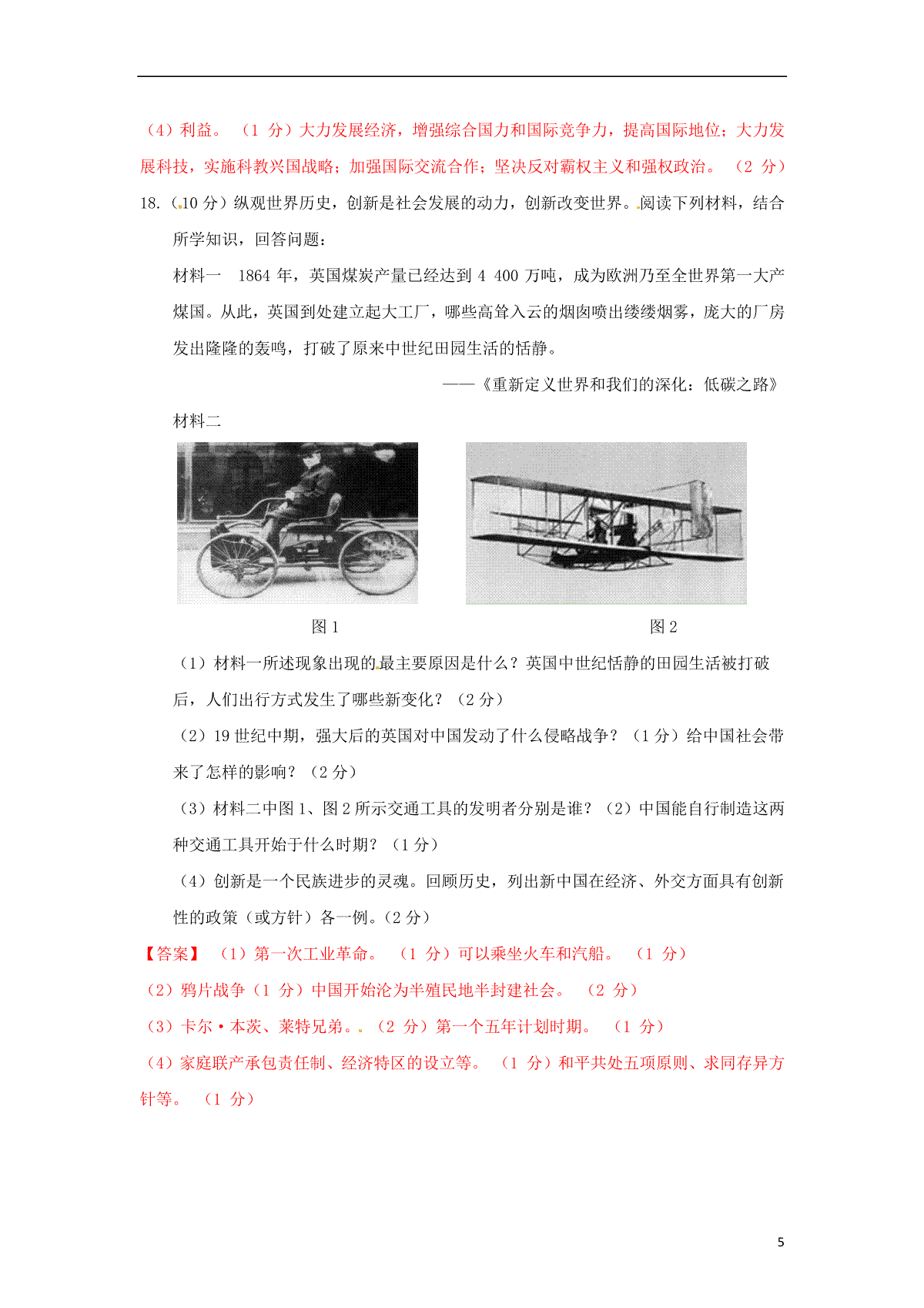 5.广西南宁市2015年中考历史真题试题(含答案)