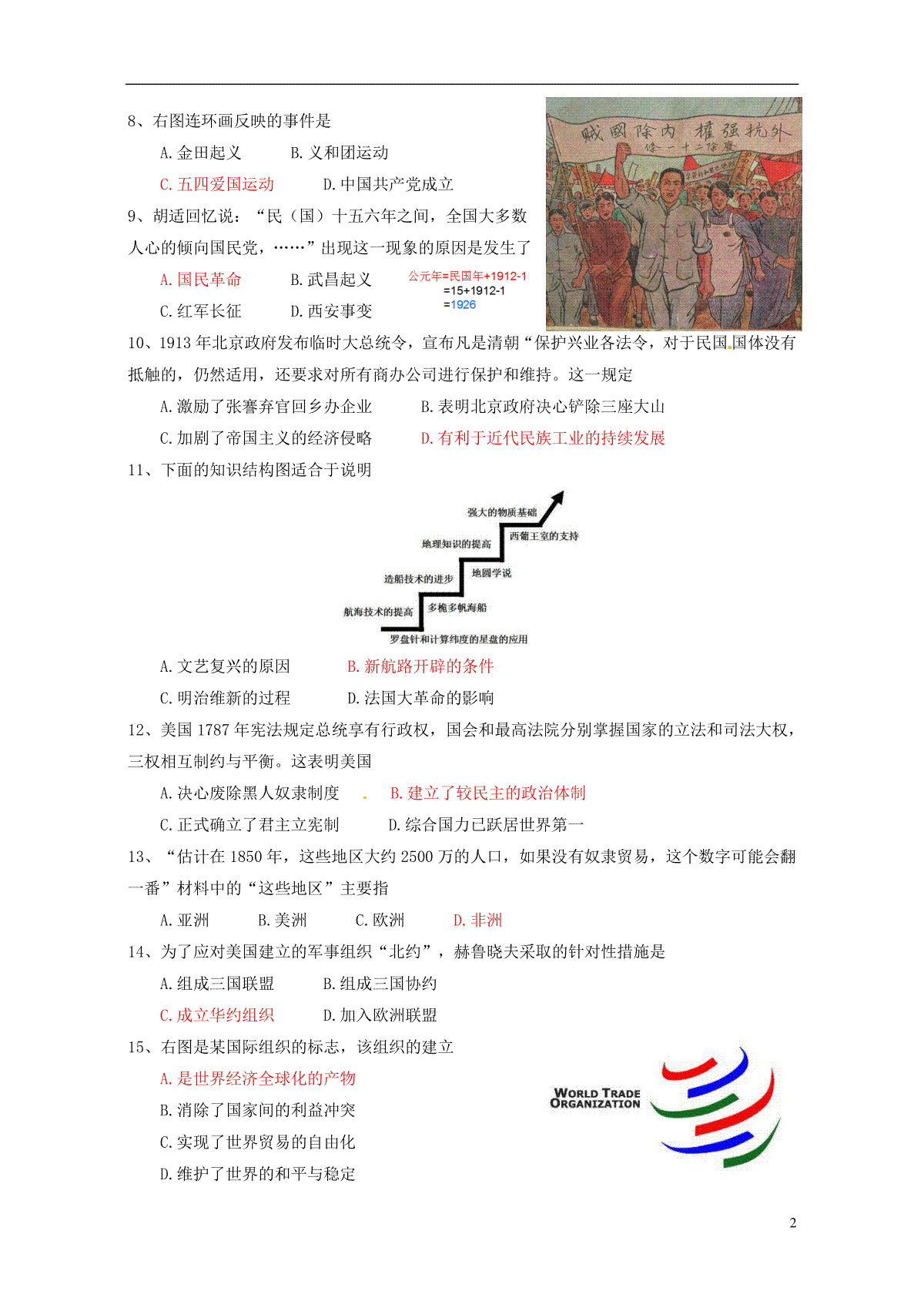 7.广东省茂名市2015年中考历史真题试题(扫描版,含答案)