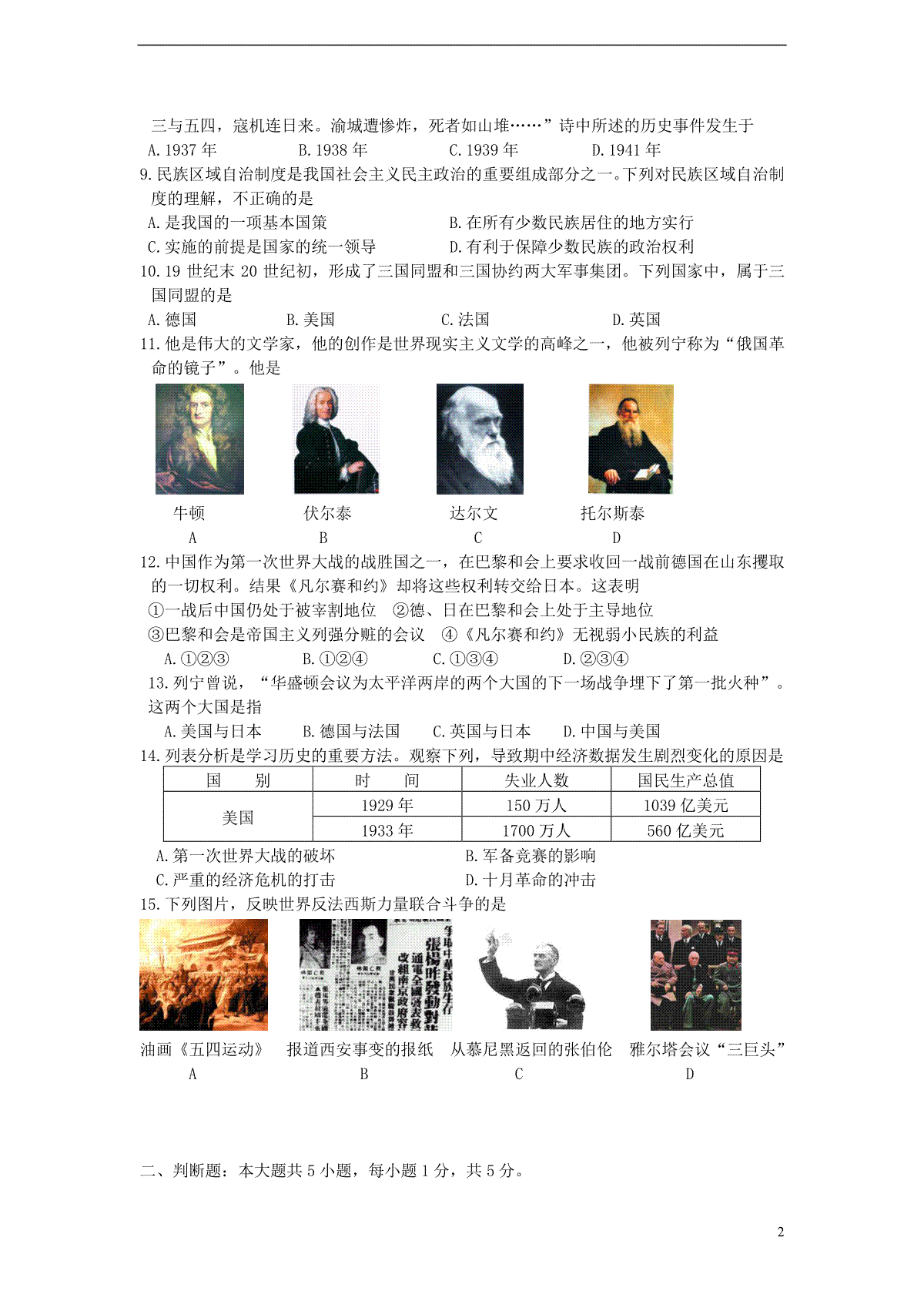 7.贵州省黔西南州2015年中考历史真题试题(含答案)