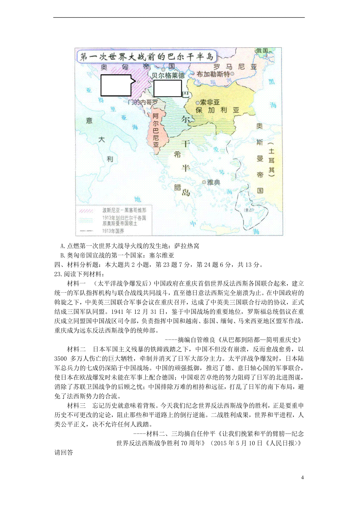 下载重庆市2015年中考历史真题试题(B卷,含答案)PDF格式或doc