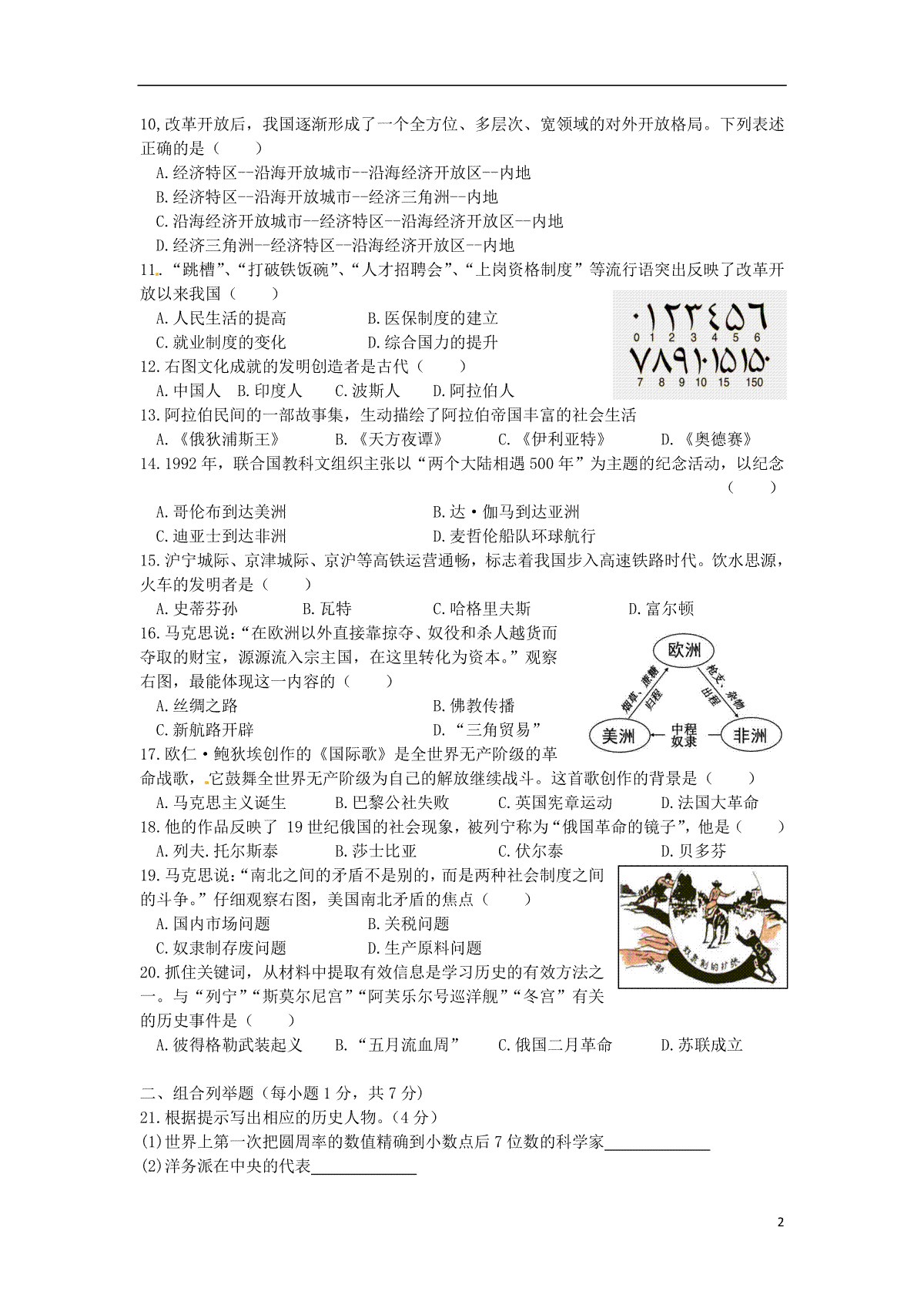 3.黑龙江省绥化市2015年中考历史真题试题(含答案)