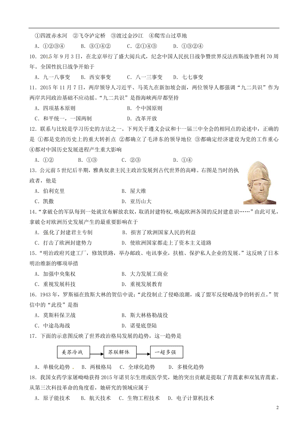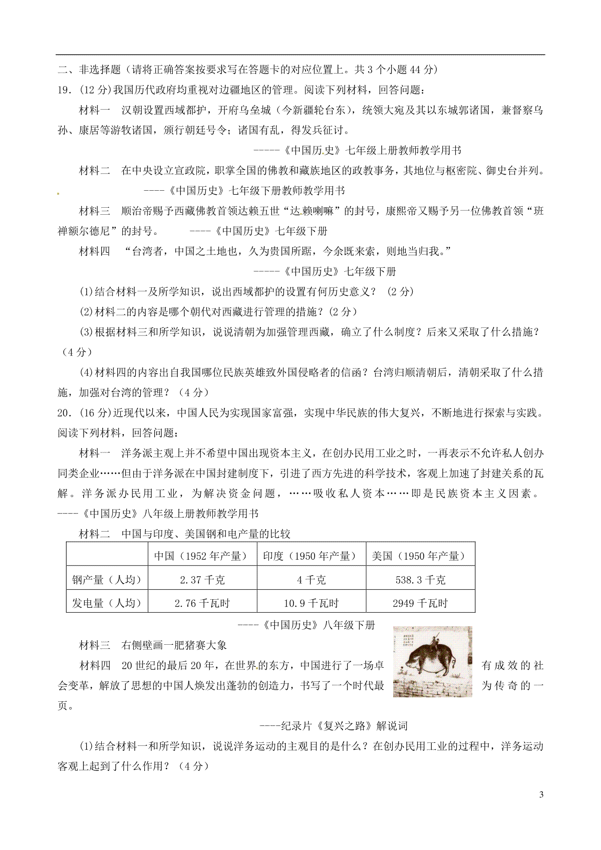 2.内蒙古呼和浩特市2016年中考文综(历史部分)真题试题(含解析)