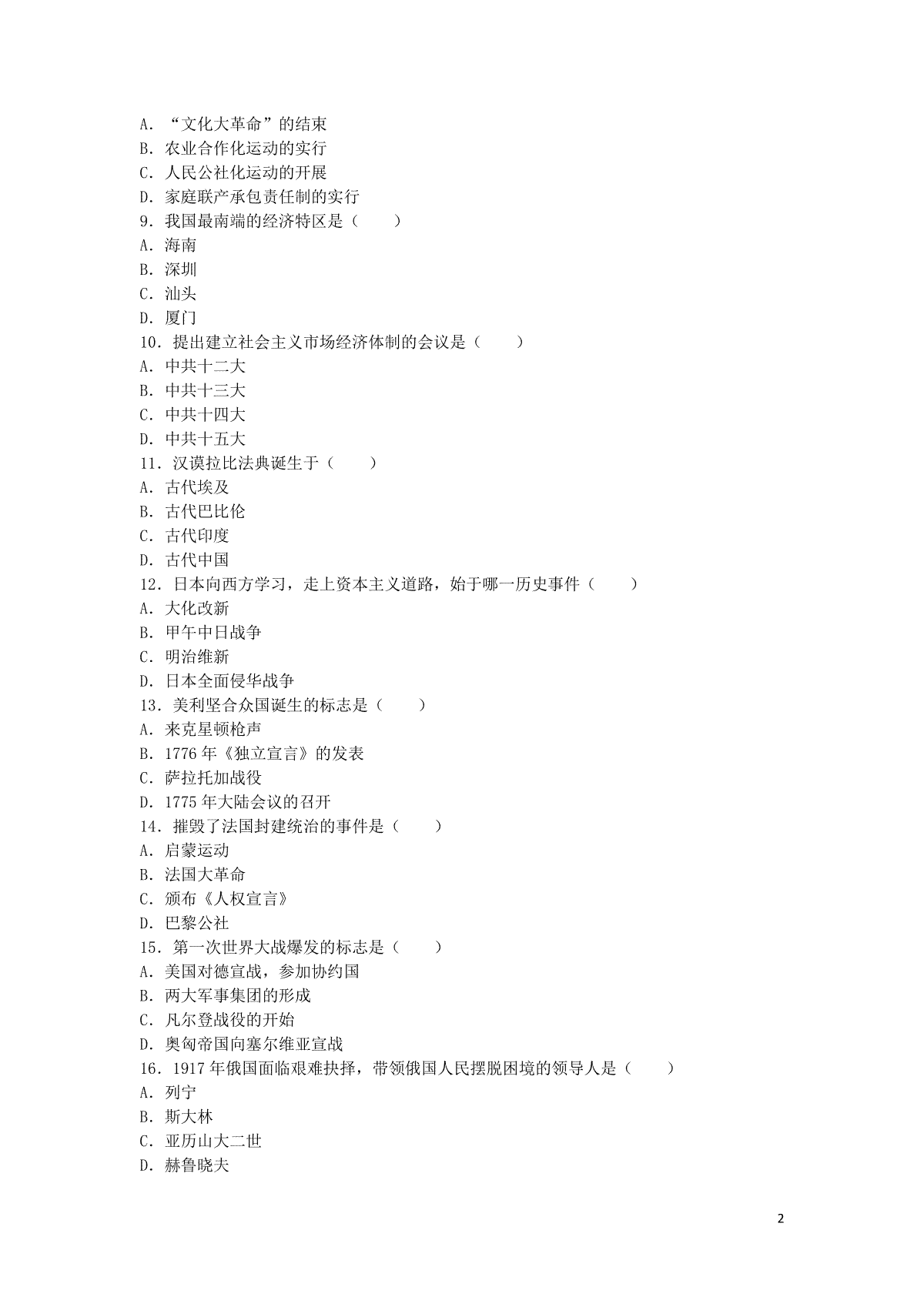 4.内蒙古呼和浩特市2016年中考文综(历史部分)真题试题(含解析)