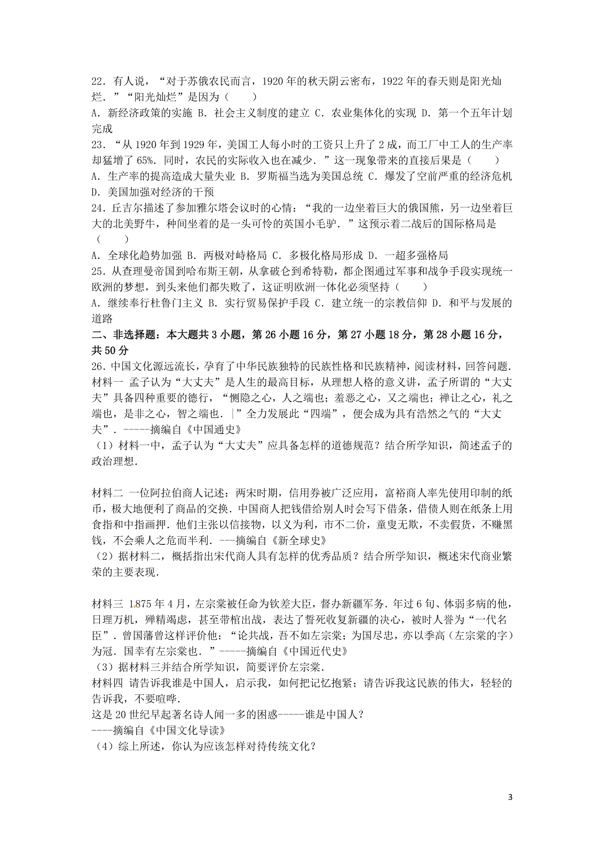 3.山东省滨州市2016年中考历史真题试题(含答案)