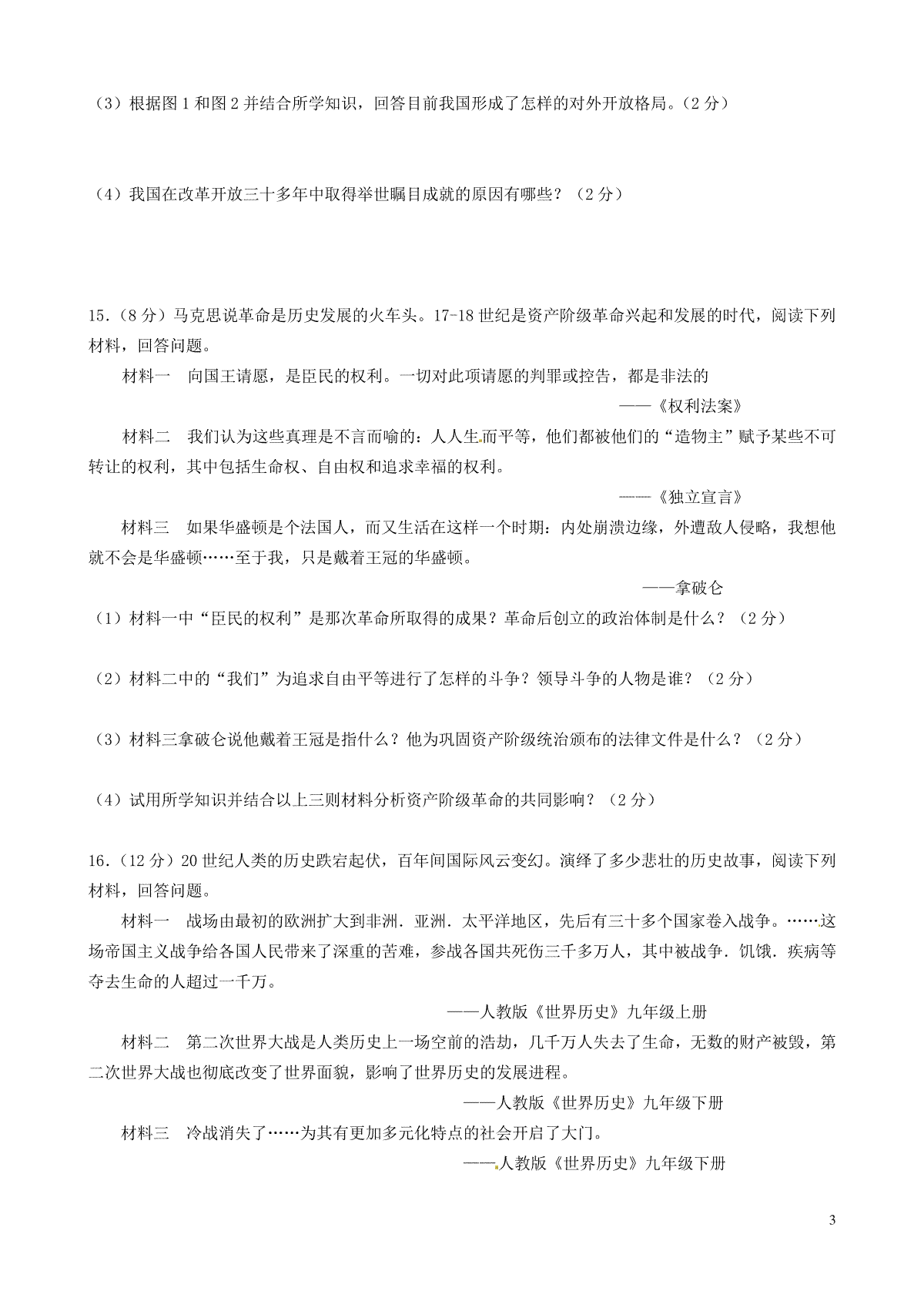 7.山西省2016年中考文综(历史部分)真题试题(含扫描答案)