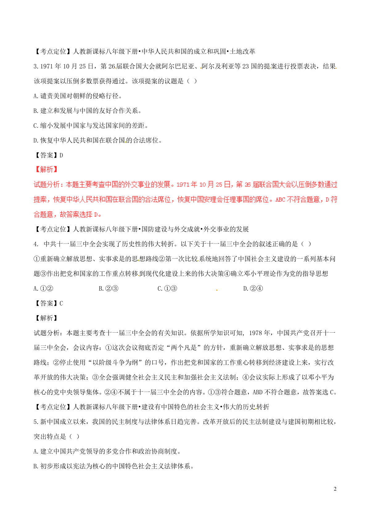 2.宁夏2017年中考历史真题试题(含答案)