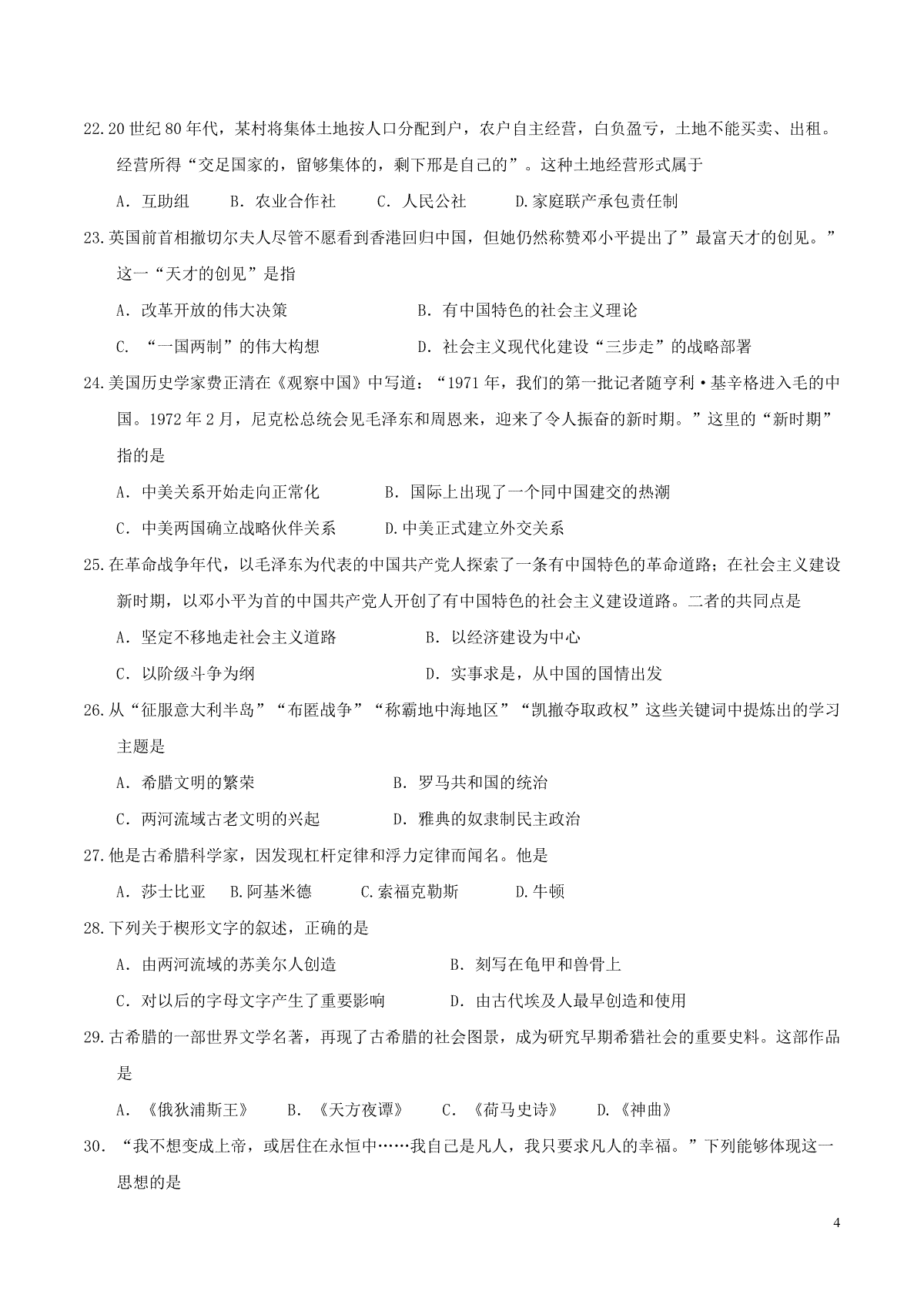 四川省宜宾市2016年中考历史真题试题(含答案)