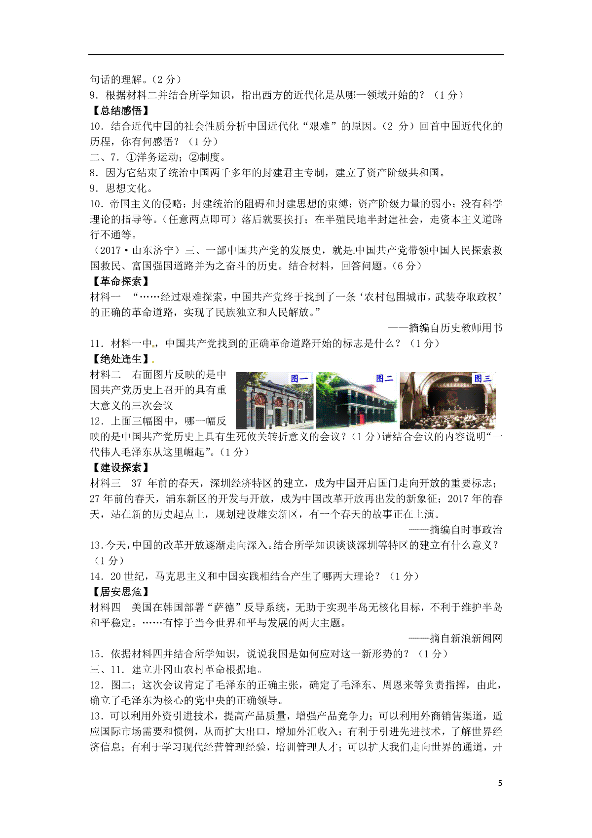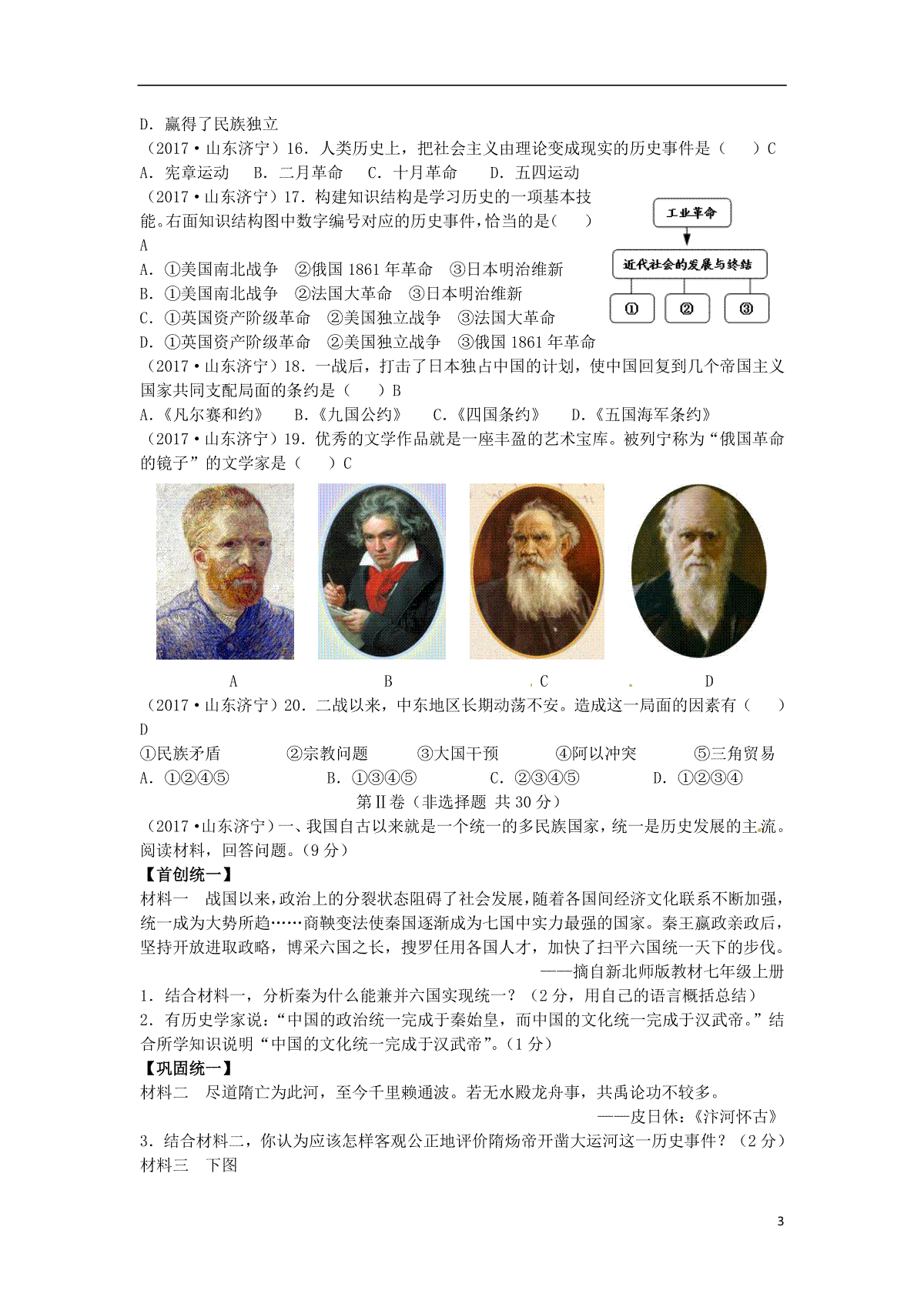 一、山东省济宁市2017年中考历史真题试题(含答案)
