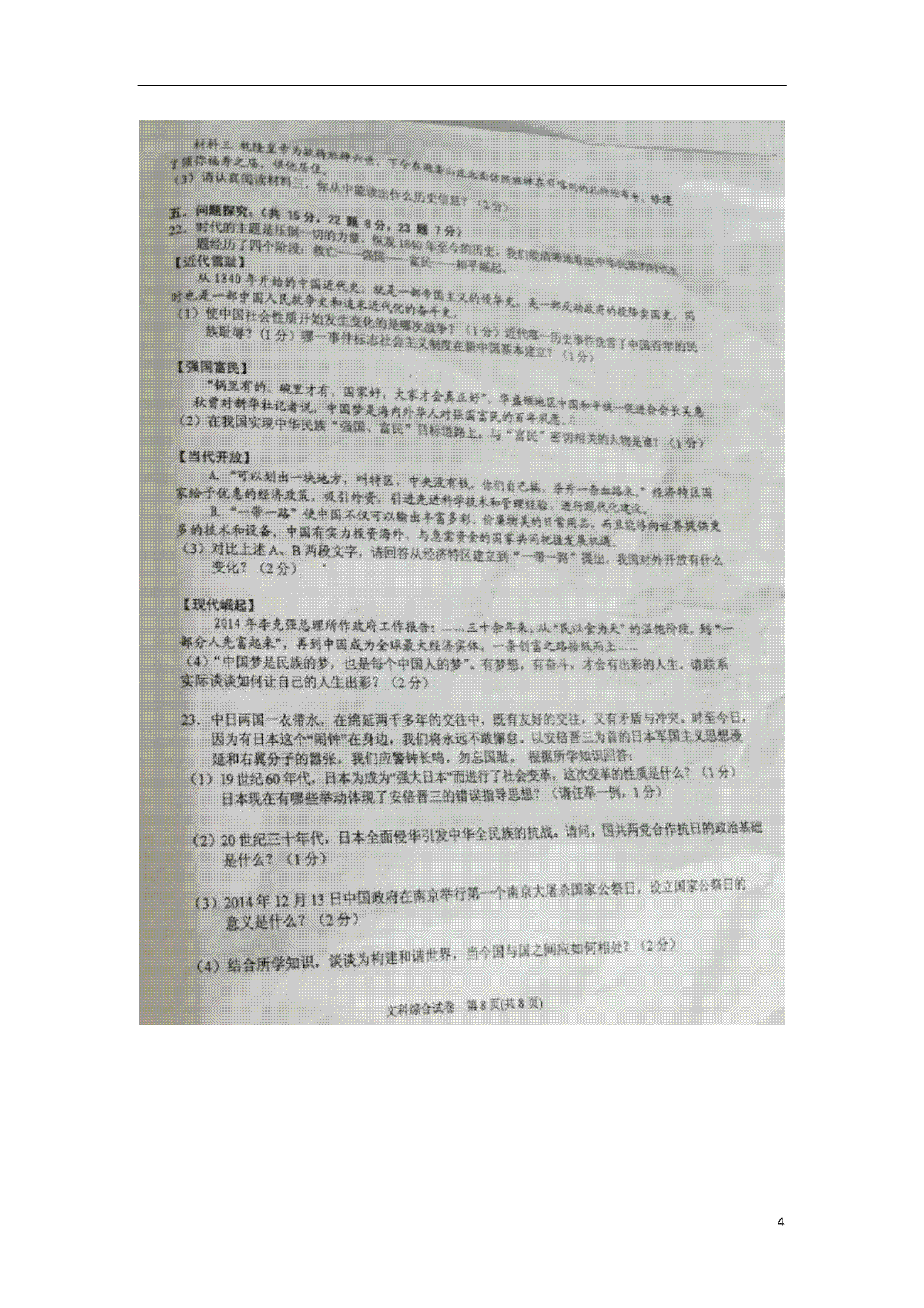 四川省南充市2016年中考文综(历史部分)真题试题(含答案)