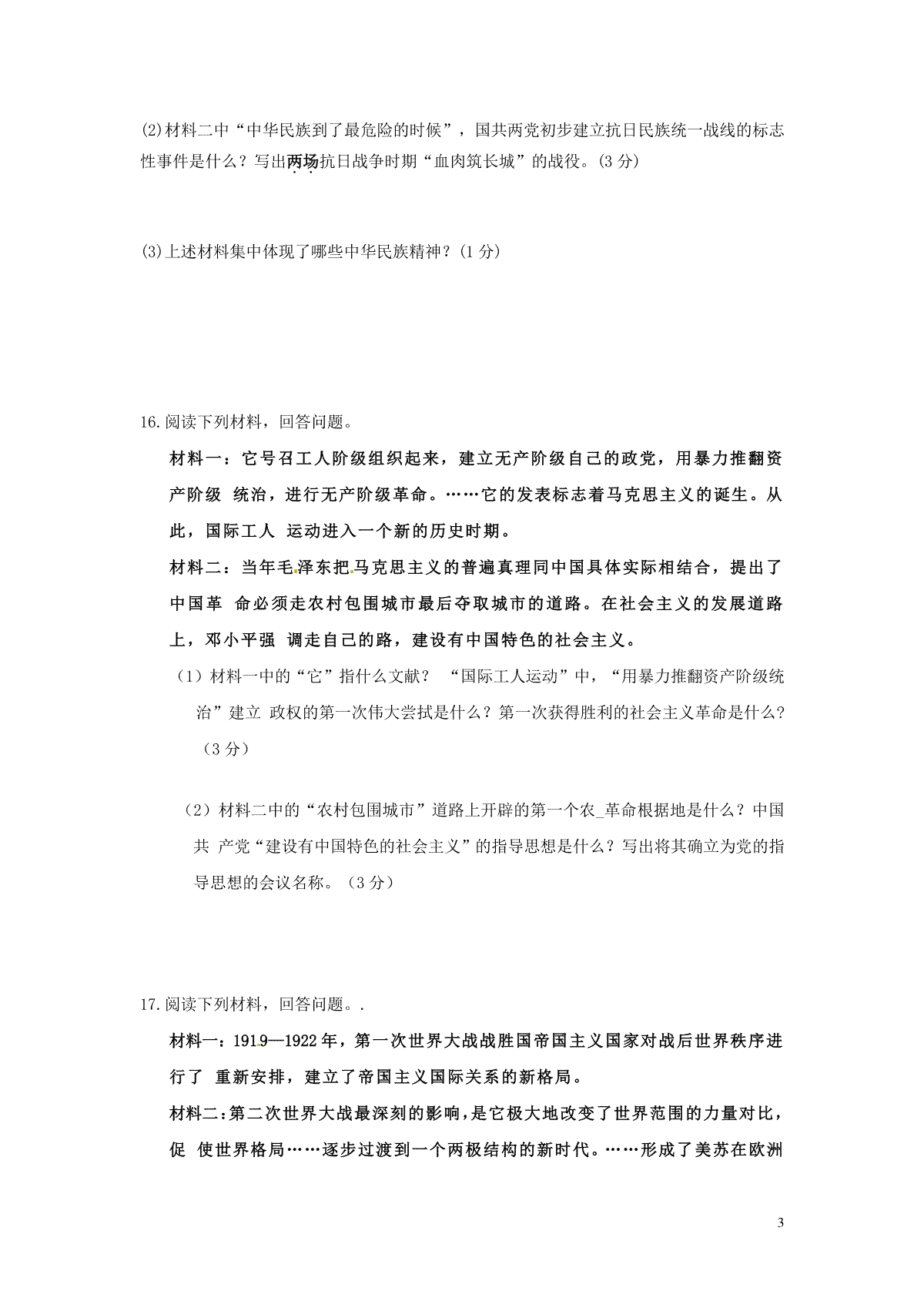 8.内蒙古包头市2018年中考历史真题试题(含答案)