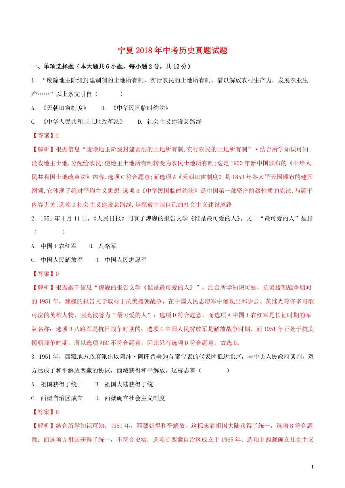 下载宁夏2018年中考历史真题试题(含解析)PDF格式或doc