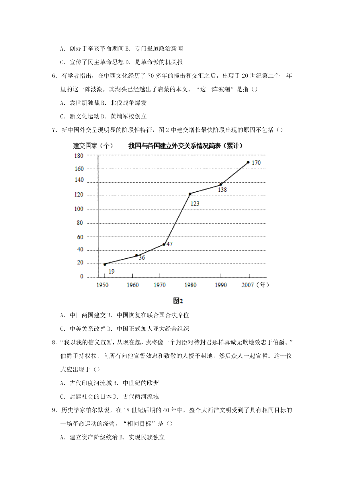 3.宁夏2018年中考历史真题试题(含答案)