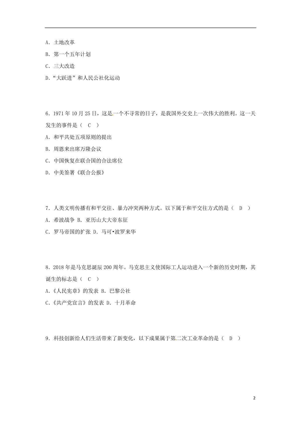 2.新疆2018年中考历史真题试题(含解析)