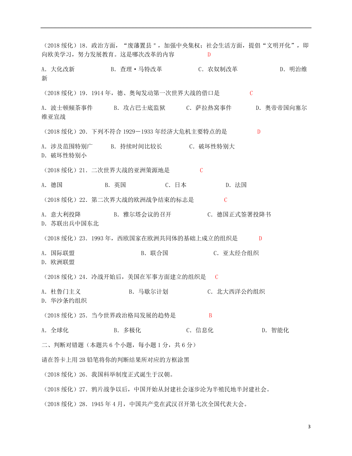 1.黑龙江省绥化市2018年中考历史真题试题(含答案)