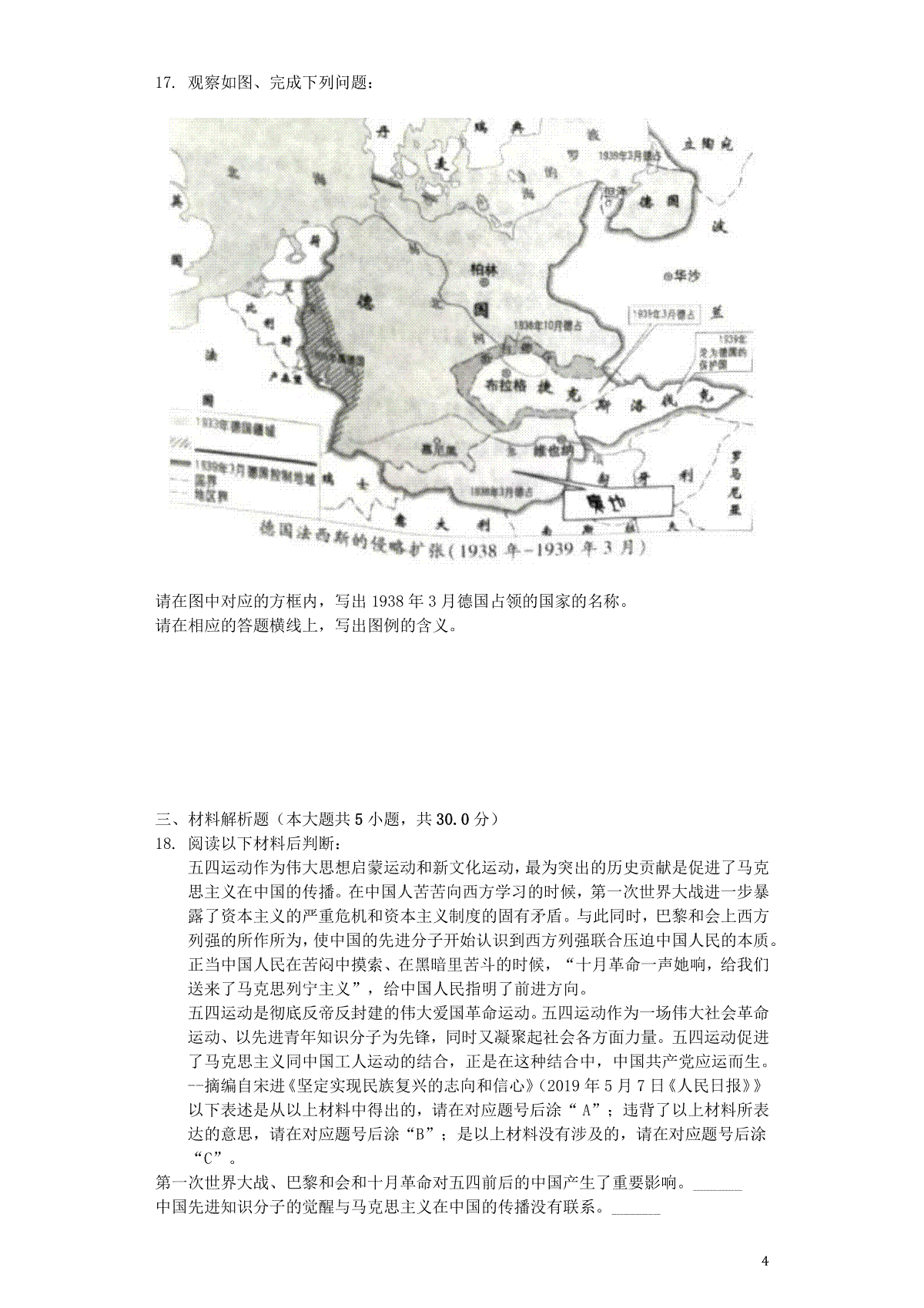 7.贵州省毕节市2019年中考历史真题试题(含解析)