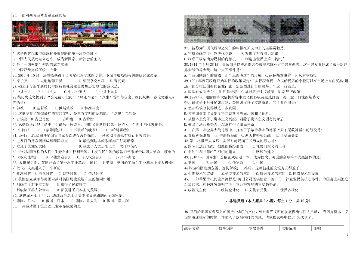 四川省南充市2016年中考文综(历史部分)真题试题(含答案)