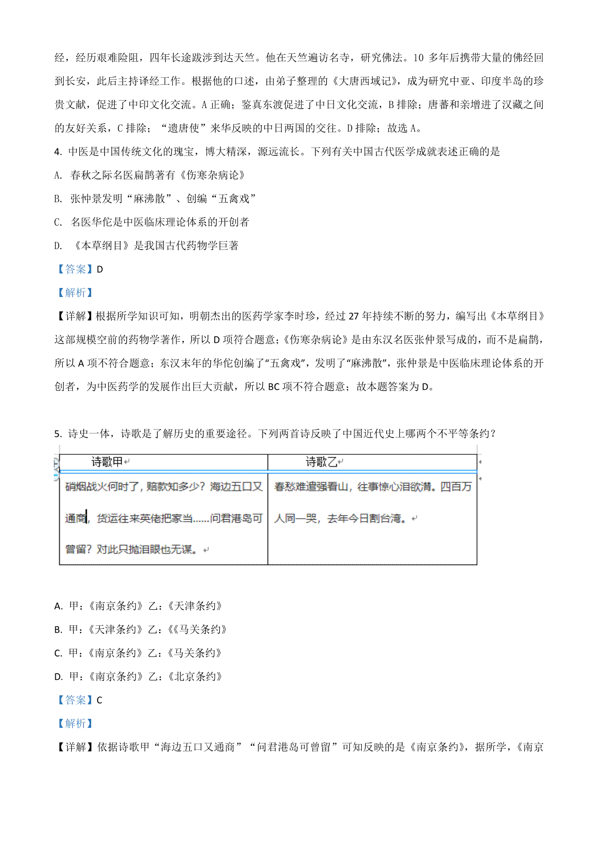 5.精品解析:四川省遂宁市2020年中考历史试题(解析版)