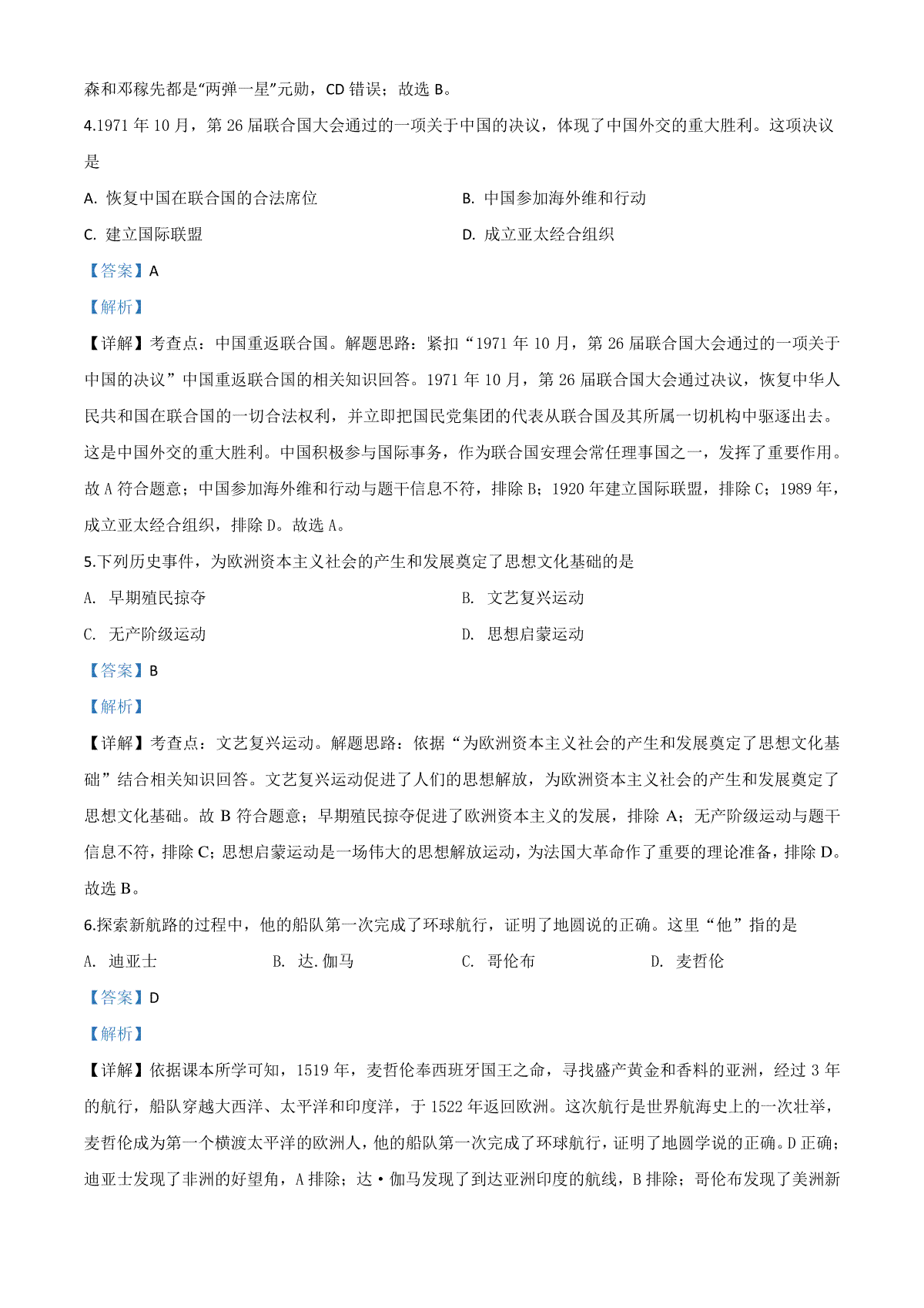 3.精品解析:湖北省恩施州2020年中考历史试题(解析版)