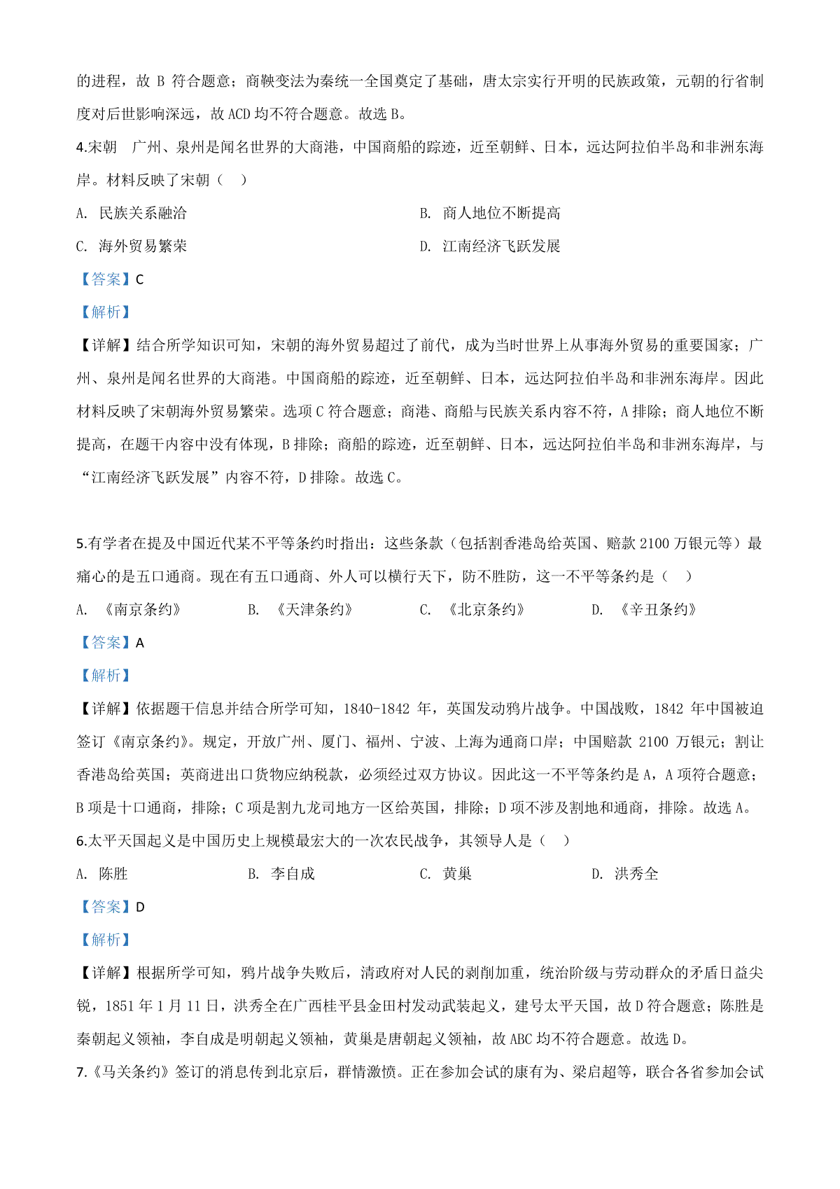 一、精品解析:云南省2020年中考历史试题(解析版)