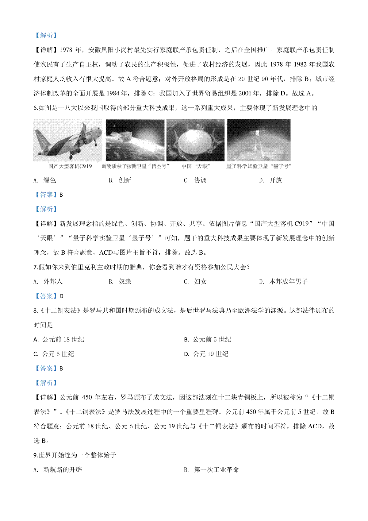 6.精品解析:吉林省2020年中考历史试题(原卷版)