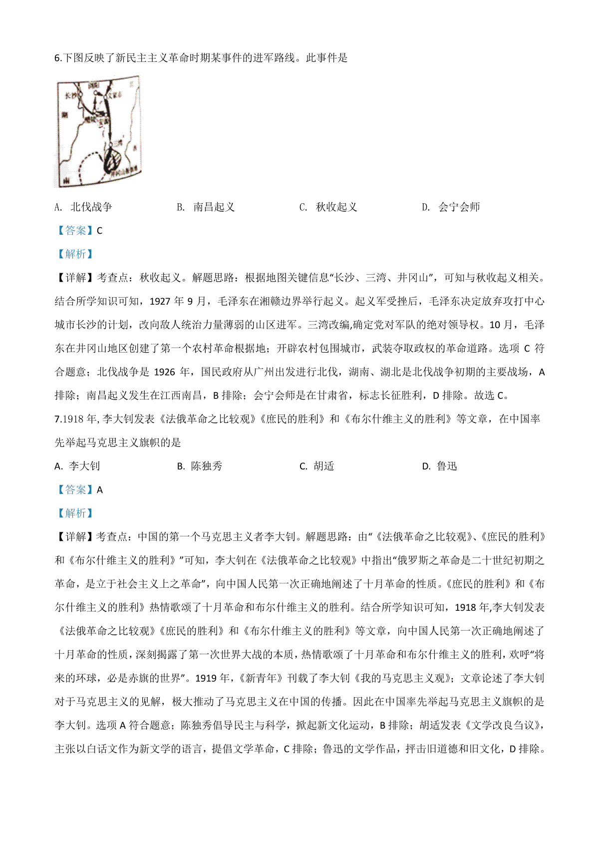 7.精品解析:湖南省怀化市2020中考历史真题 (解析版)