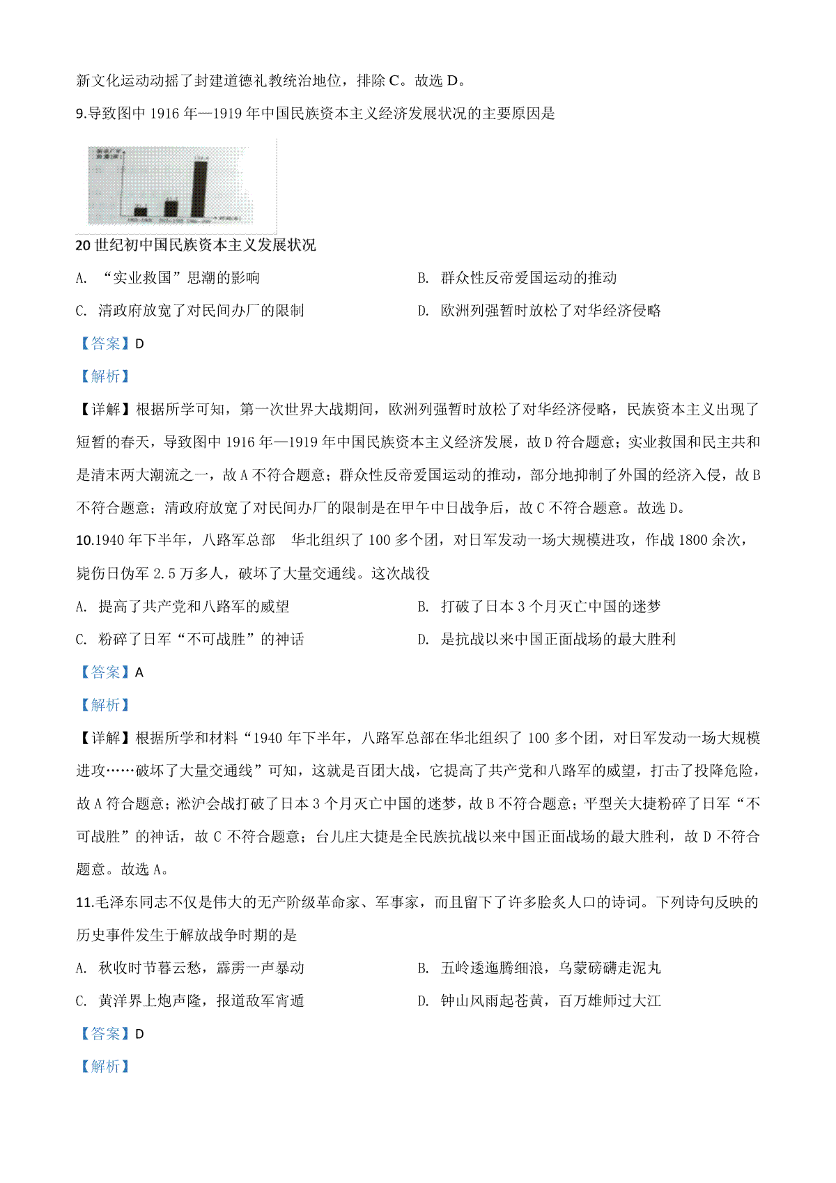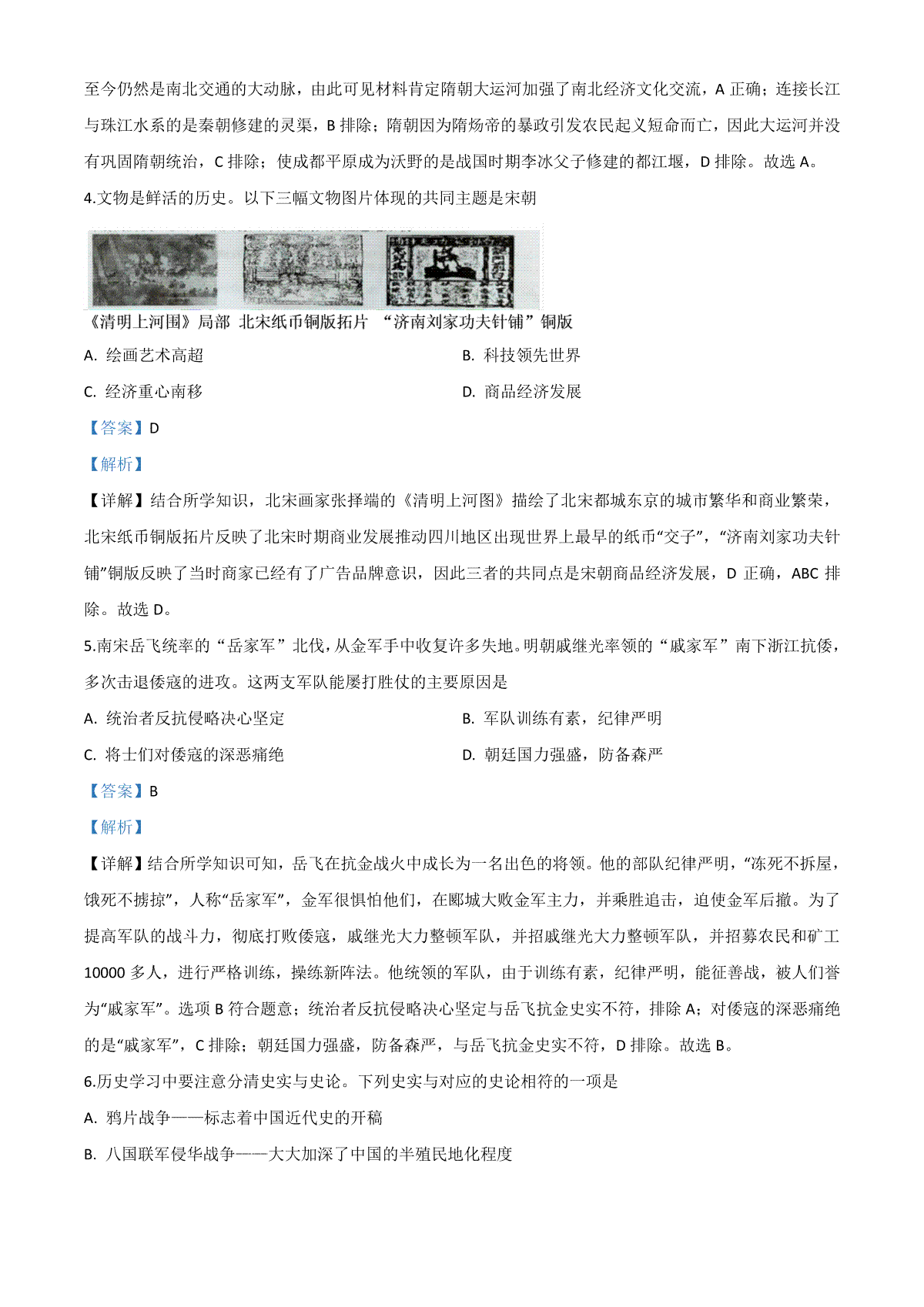 5.精品解析:湖南省湘潭市2020中考历史真题(解析版)