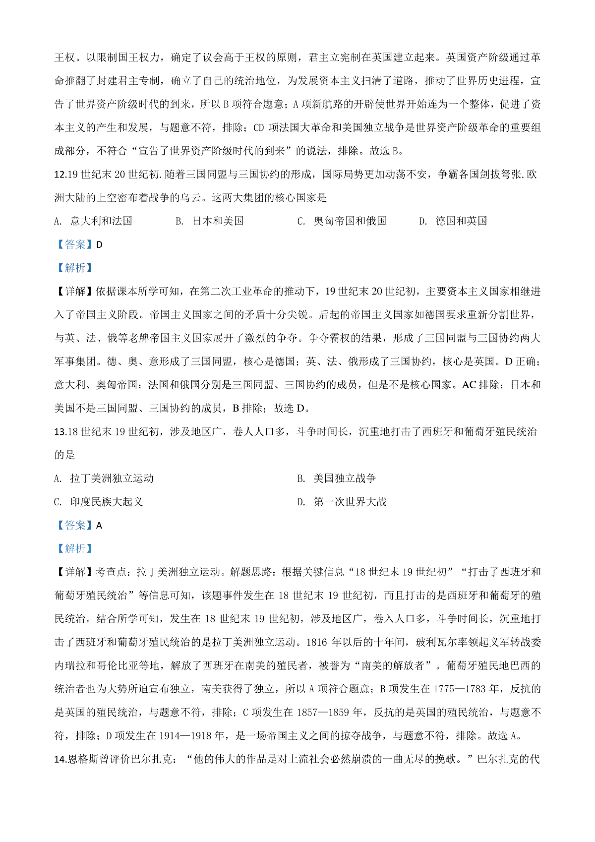 5.精品解析:湖南省长沙市2020年中考历史试题(解析版)
