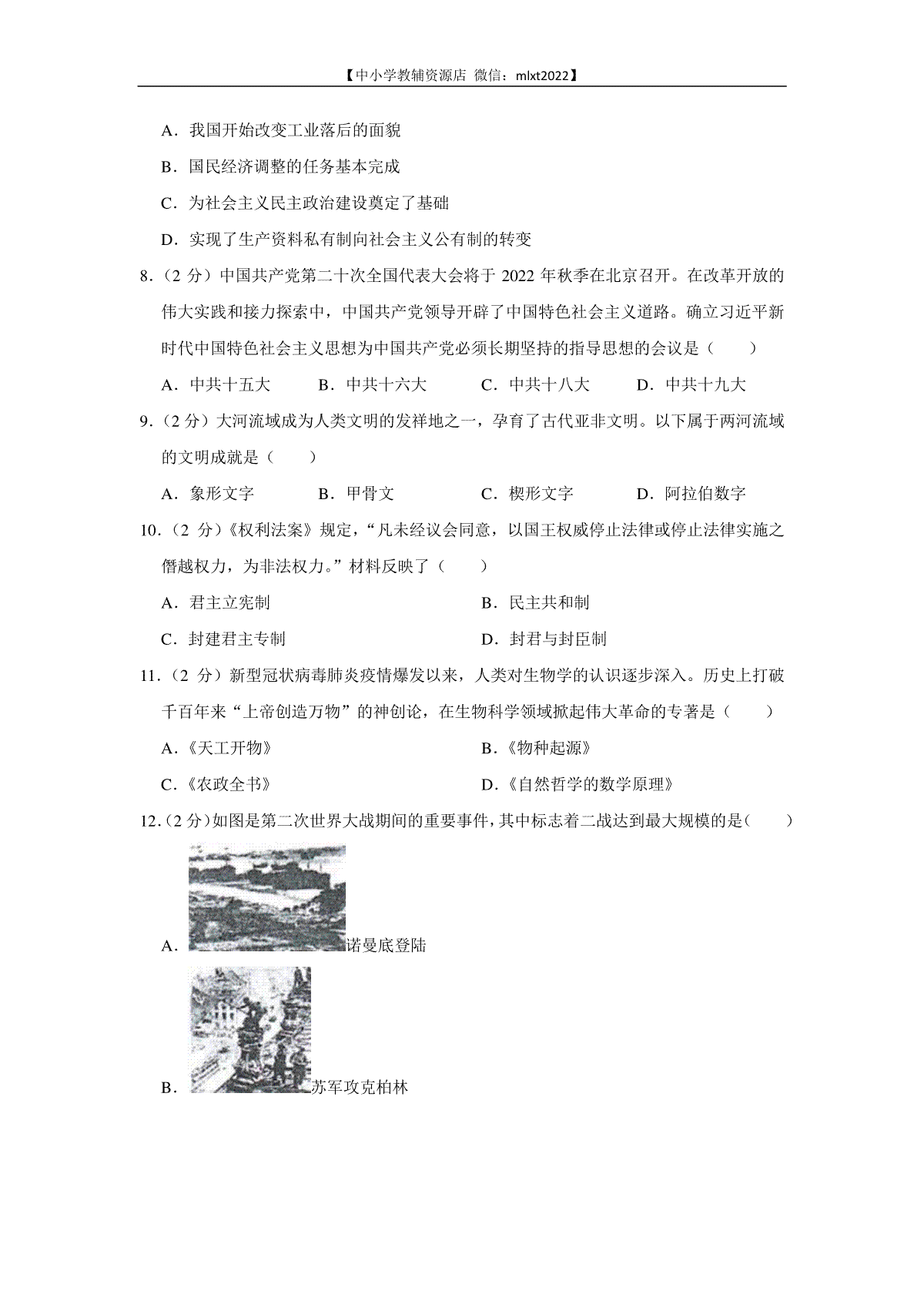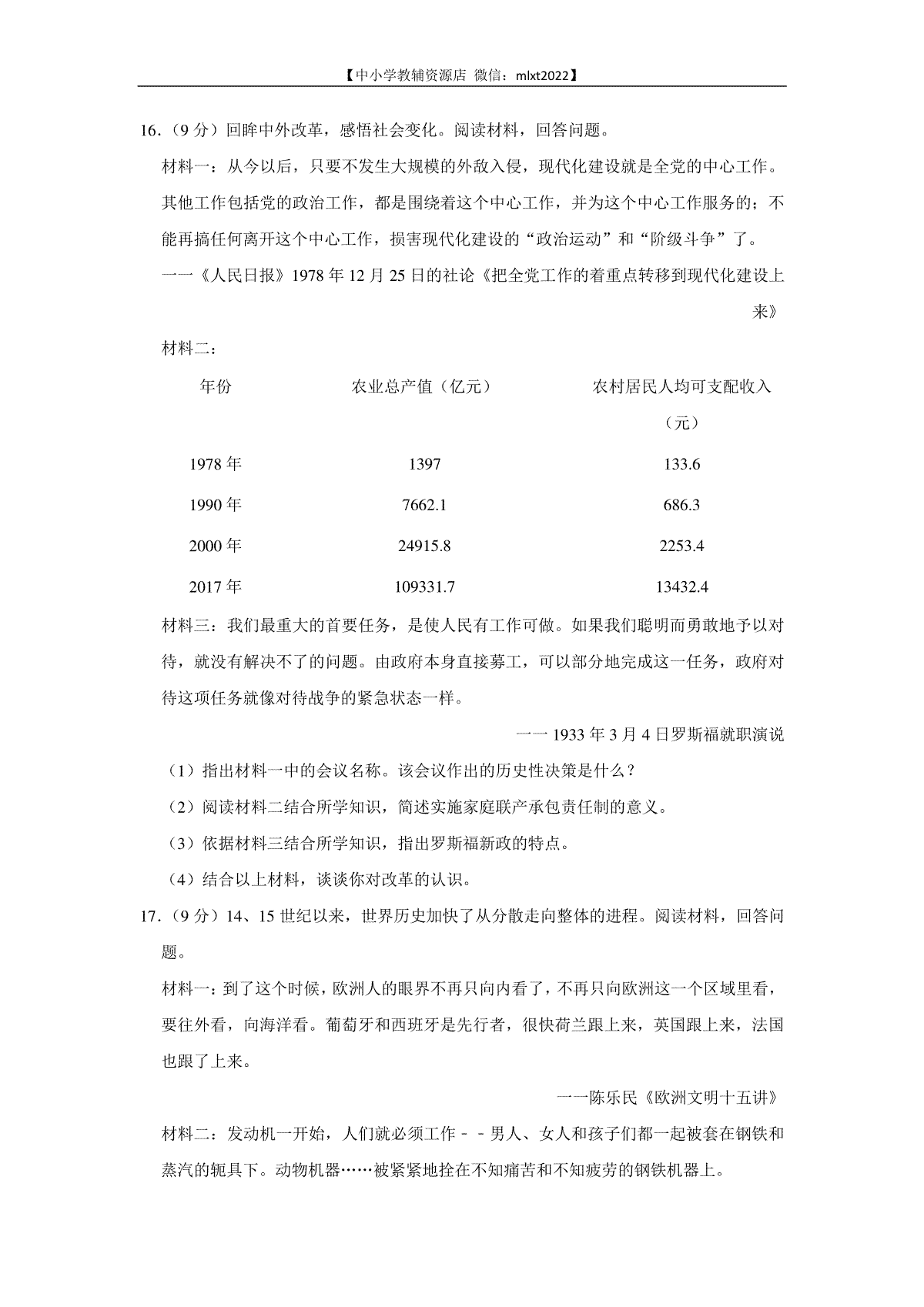 5.2022年湖北省荆州市初中学业水平考试文科综合历史真题