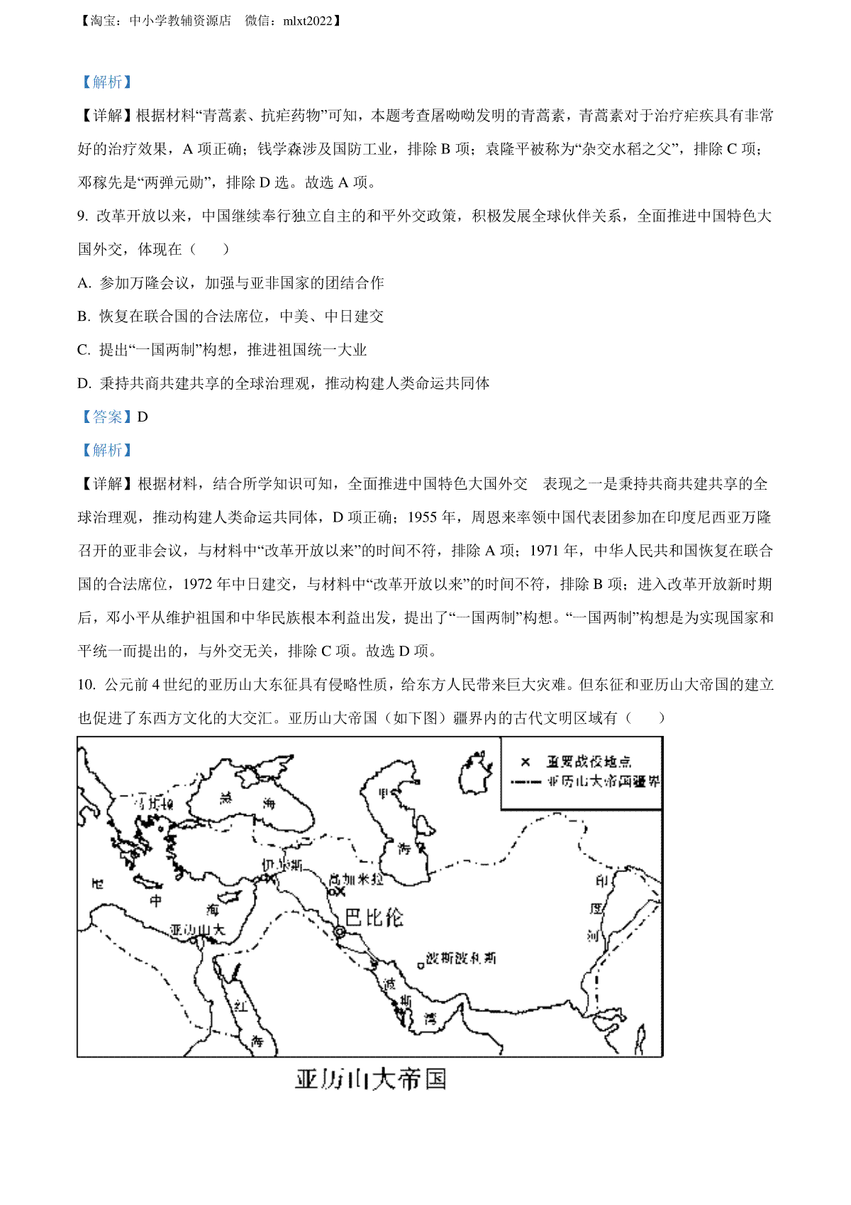 下载精品解析:2022年四川省广安市中考历史真题(解析版)PDF格式或doc