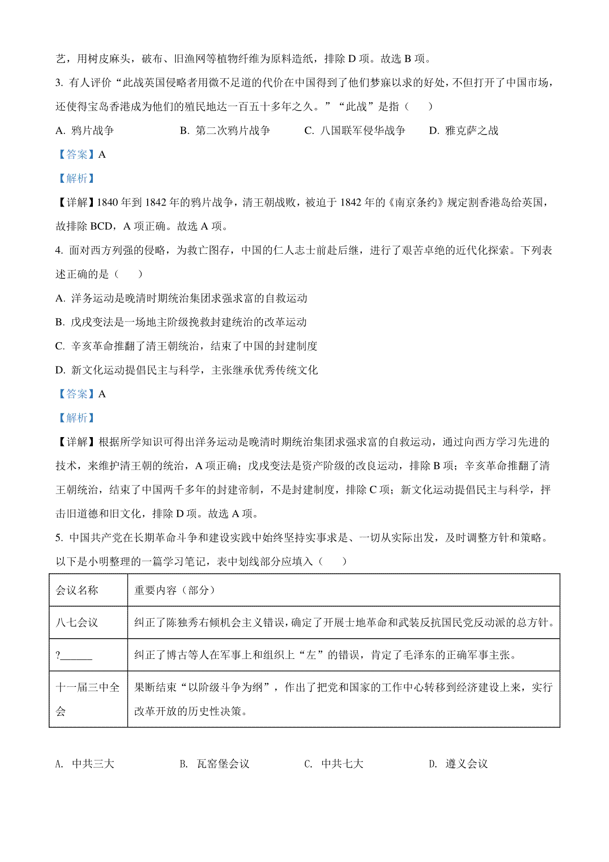 5.精品解析:2022年四川省绵阳市中考历史真题(解析版)