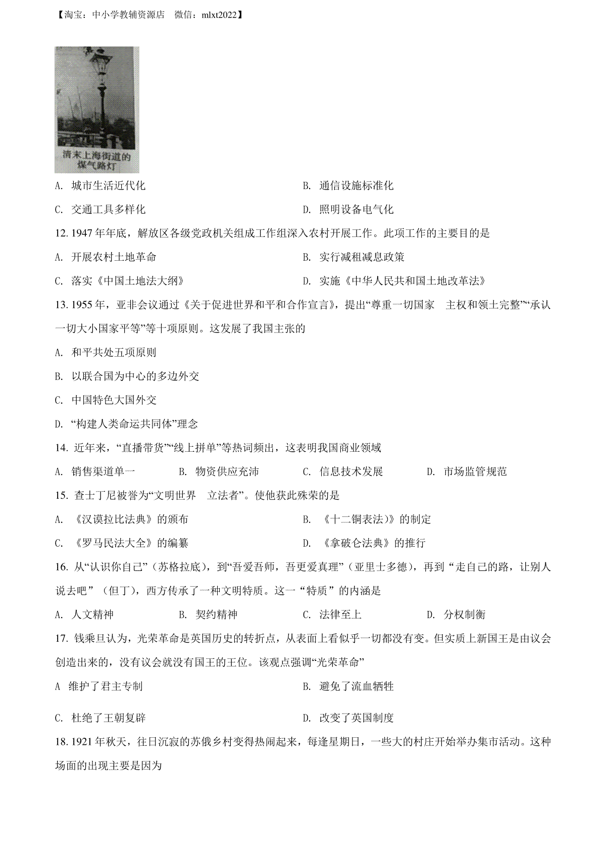 3.精品解析:2022年河北省中考历史真题(原卷版)