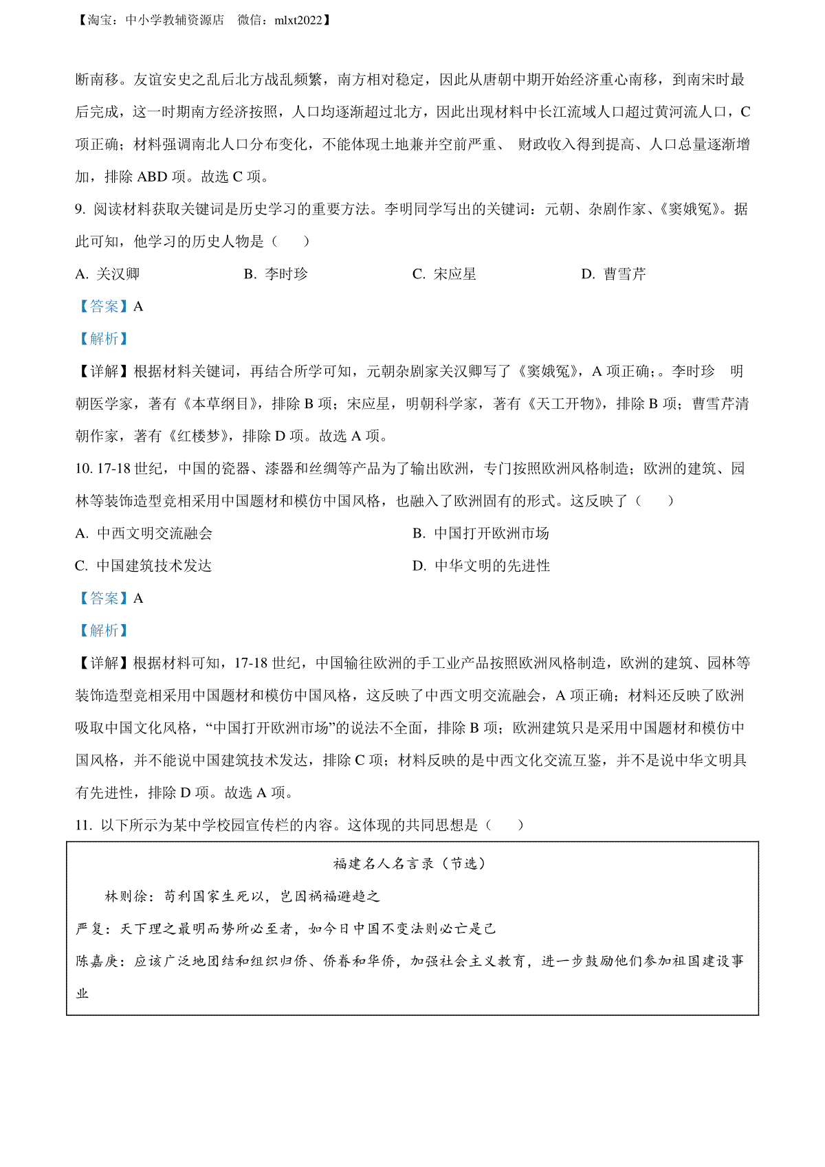 下载精品解析:2022年福建省中考历史真题(解析版)PDF格式或doc
