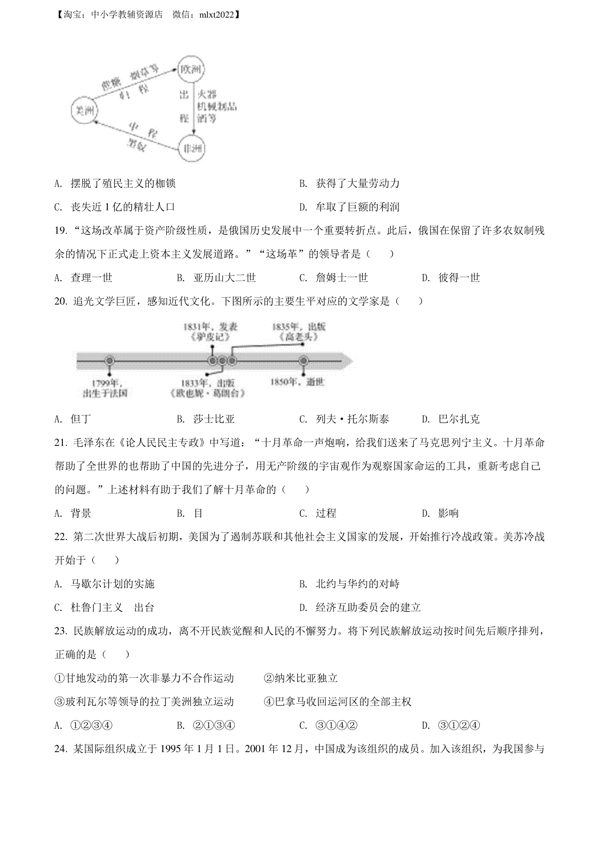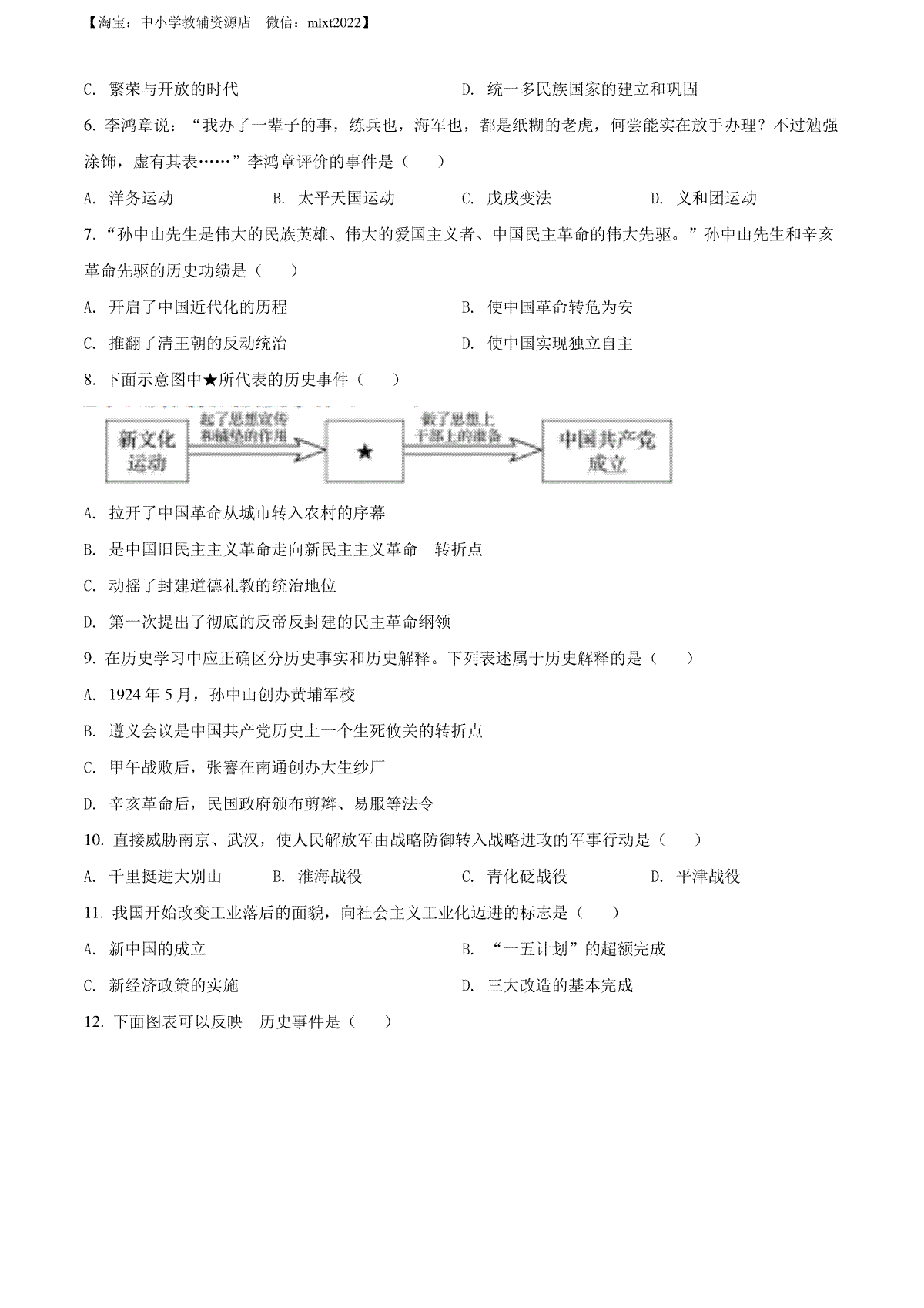 4.精品解析:2022年辽宁省抚顺、本溪铁岭、葫芦岛、中考历史真题(解析版)