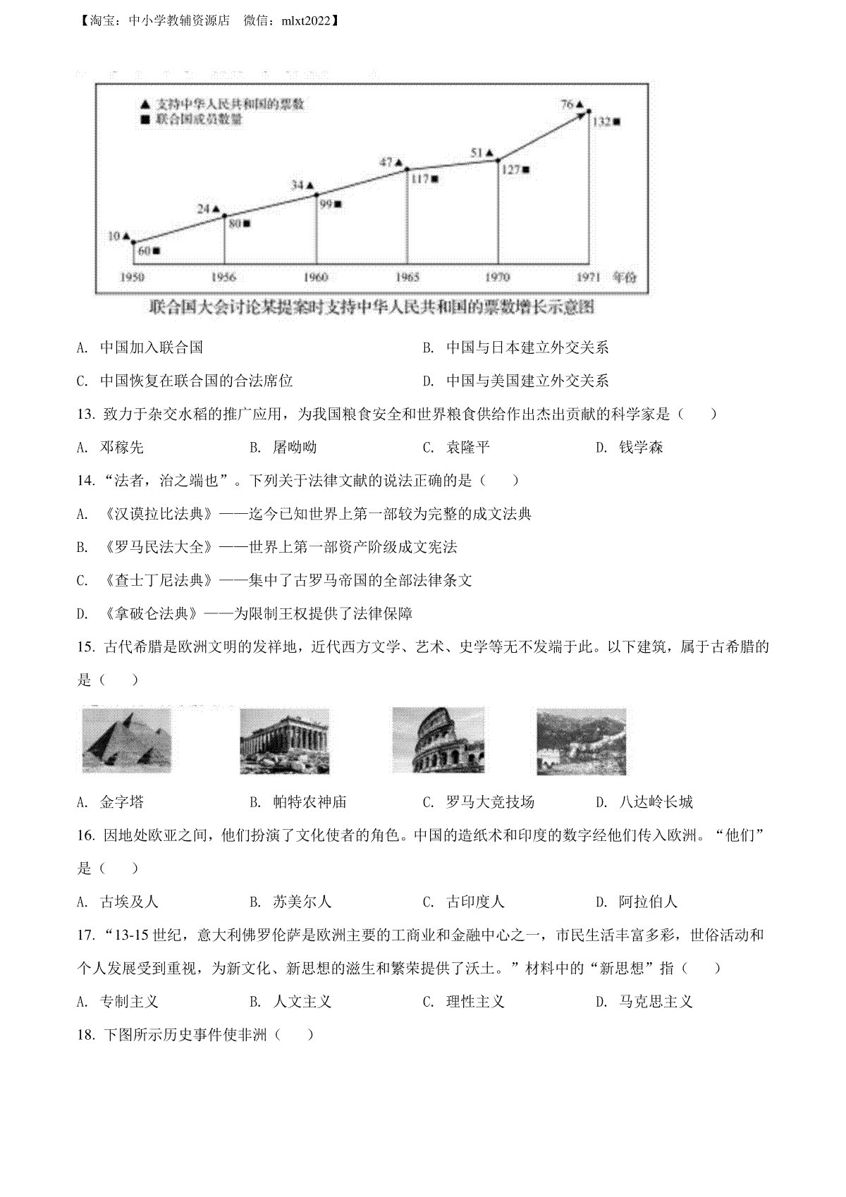 如果你想下载精品解析:2022年辽宁省盘锦市中考历史真题(原卷版)DOC或PDF版,请点击本文末链接!