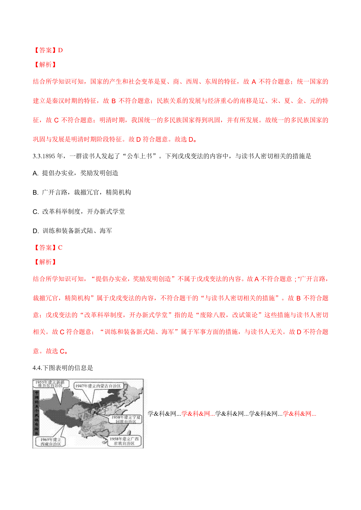 3.2017年中考真题精品解析 历史(四川乐山卷)精编word版(解析版)