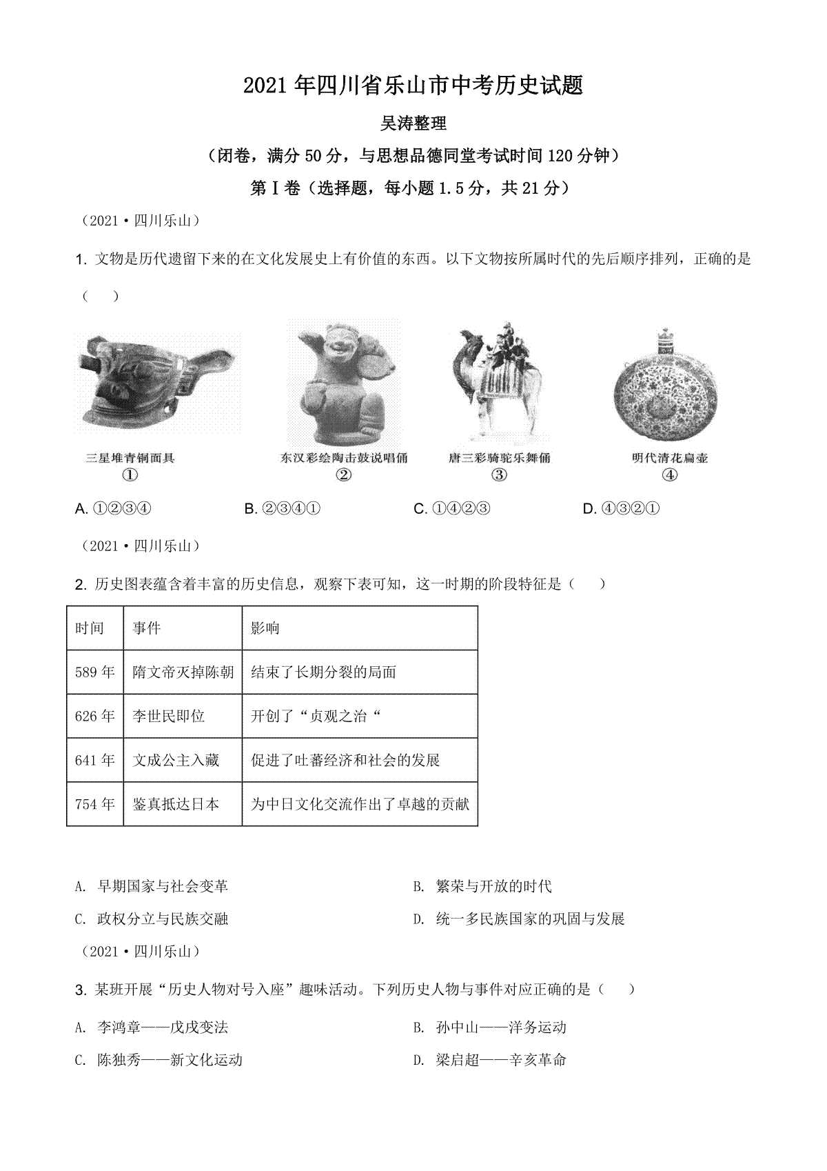 一、精品解析:2021年四川省乐山市中考历史试题(原卷版)