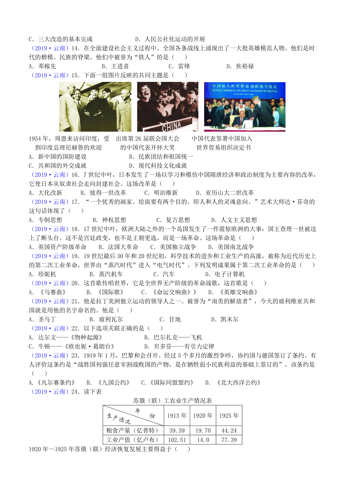 下载2019年云南中考历史真题及答案PDF格式或doc