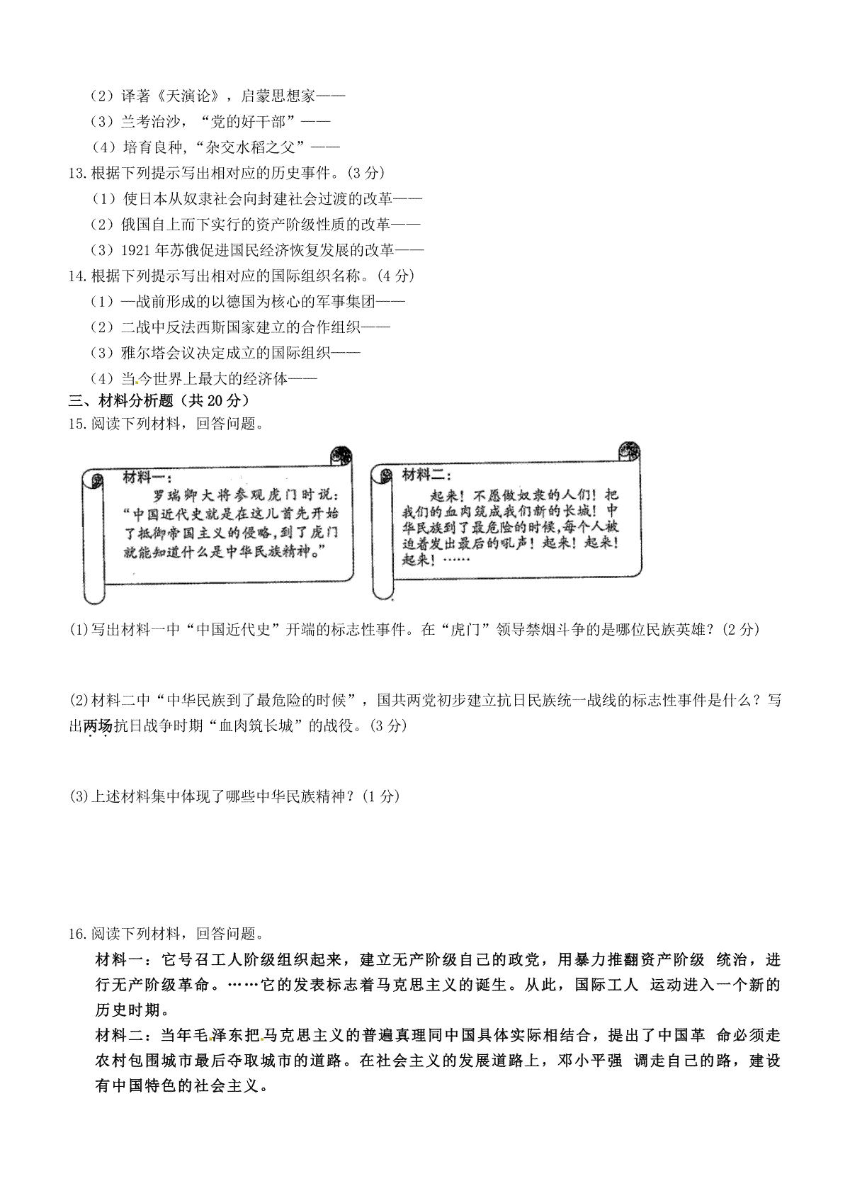内蒙古赤峰市2016年中考历史真题试题(含答案)