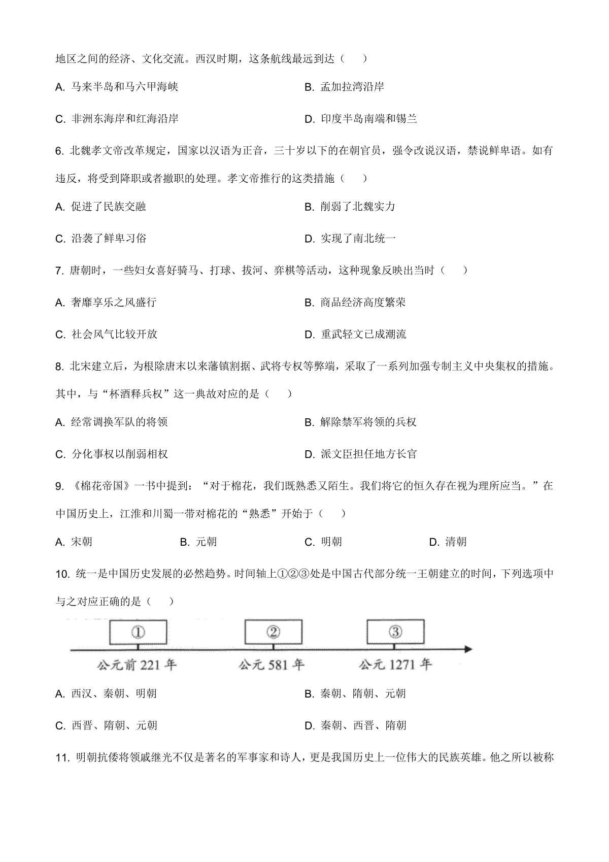 一、2021年四川省成都市历史中考试卷(学生版)