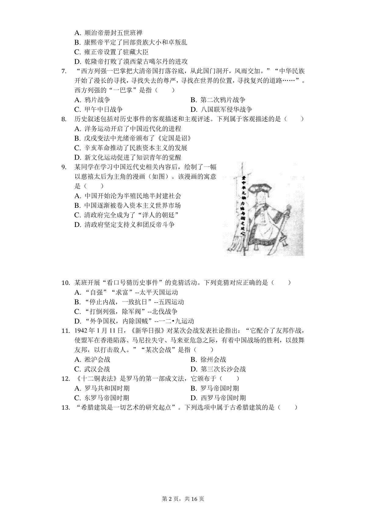 下载四川省成都市2019年中考历史试卷及答案PDF格式或doc