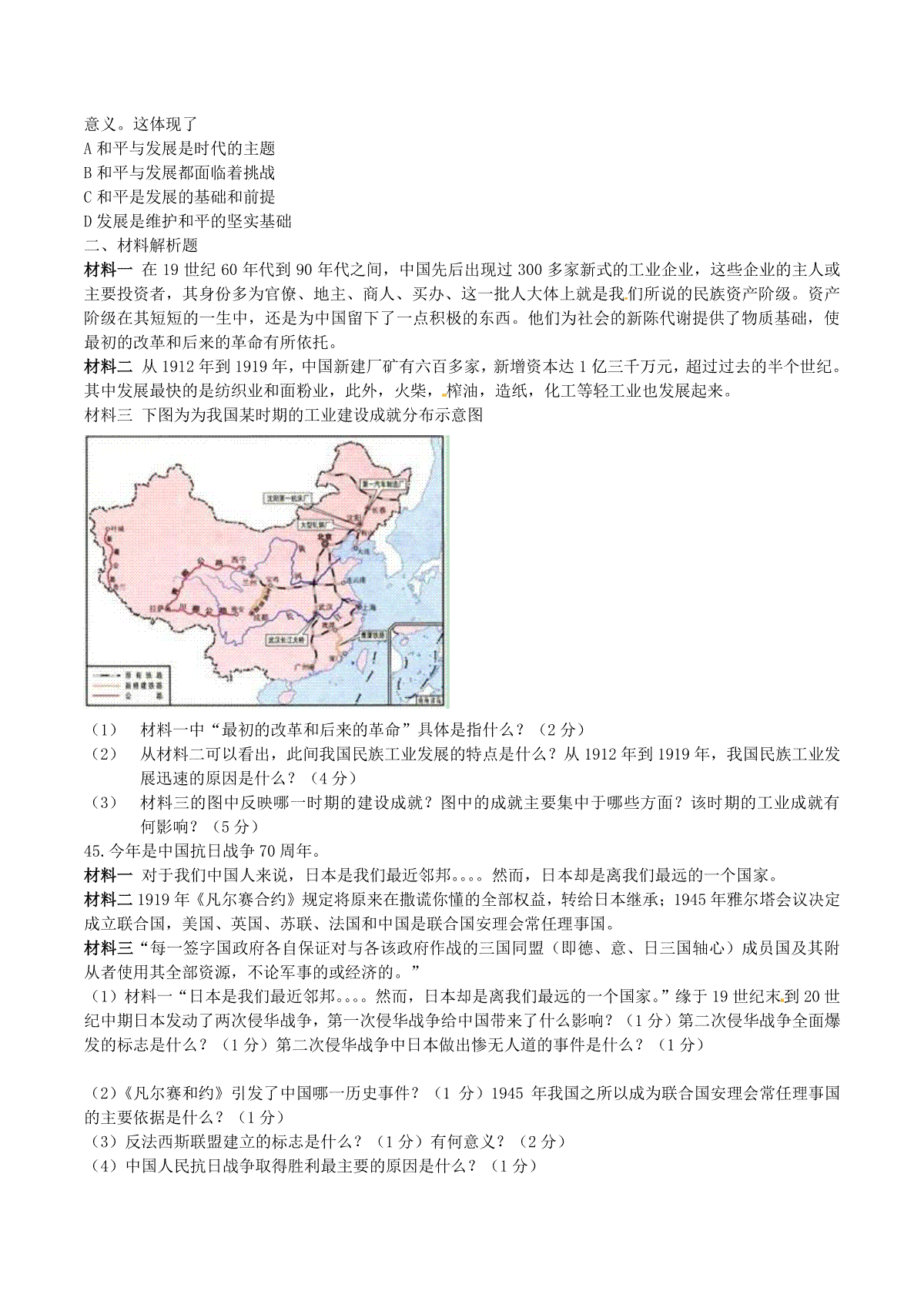 内蒙古赤峰市2016年中考历史真题试题(含答案)