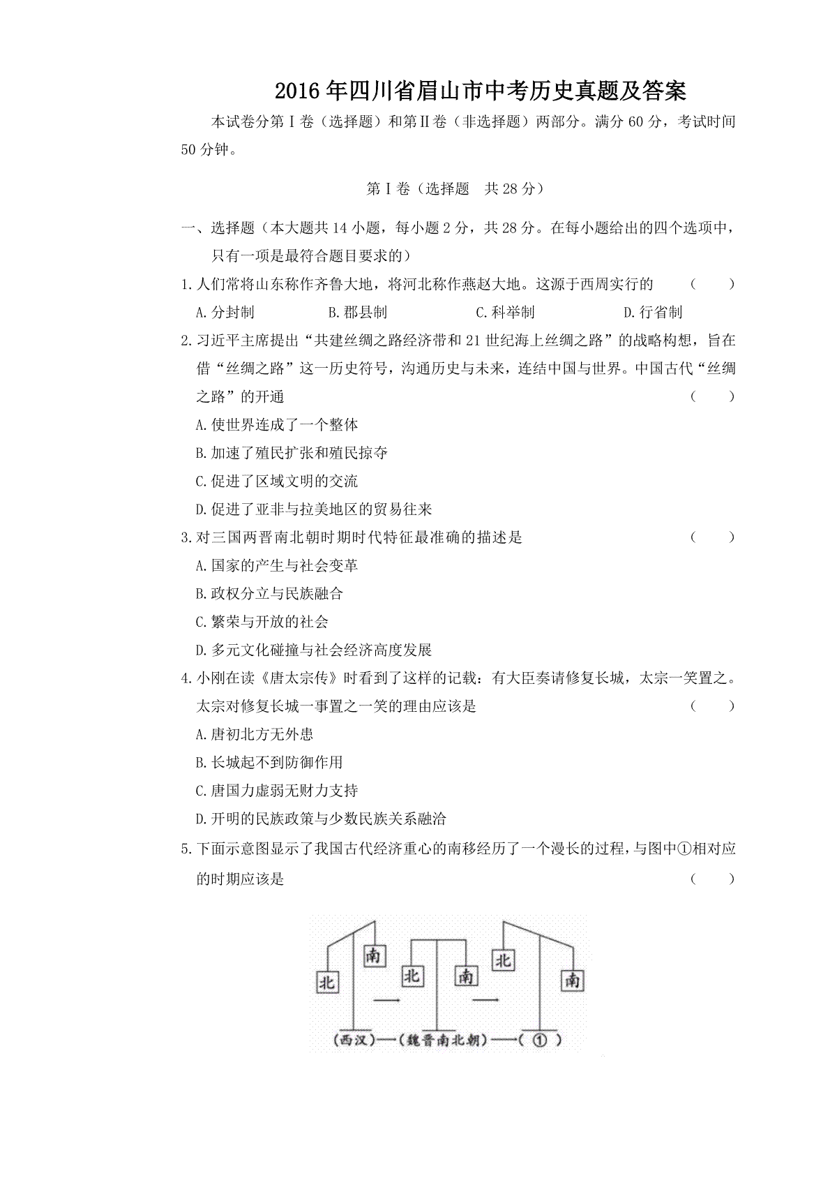 下载2016年四川省眉山市中考历史真题及答案PDF格式或doc
