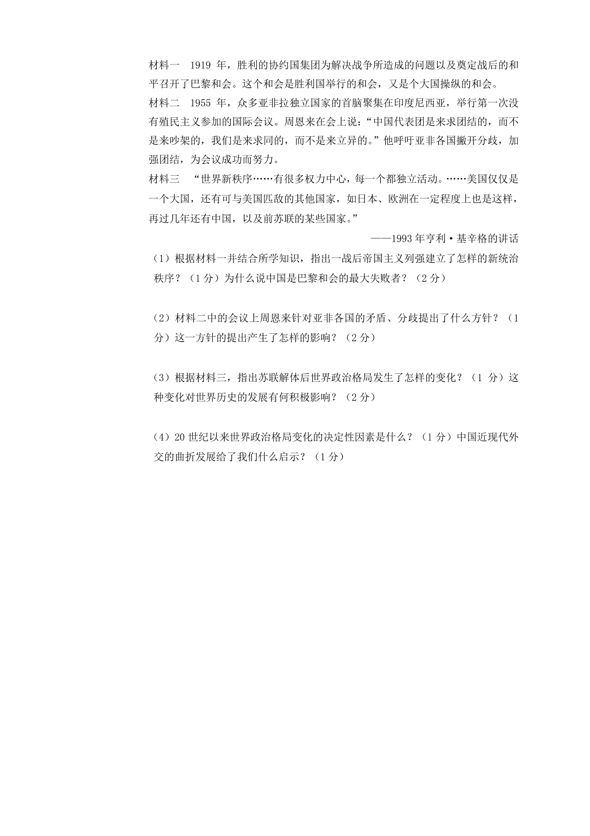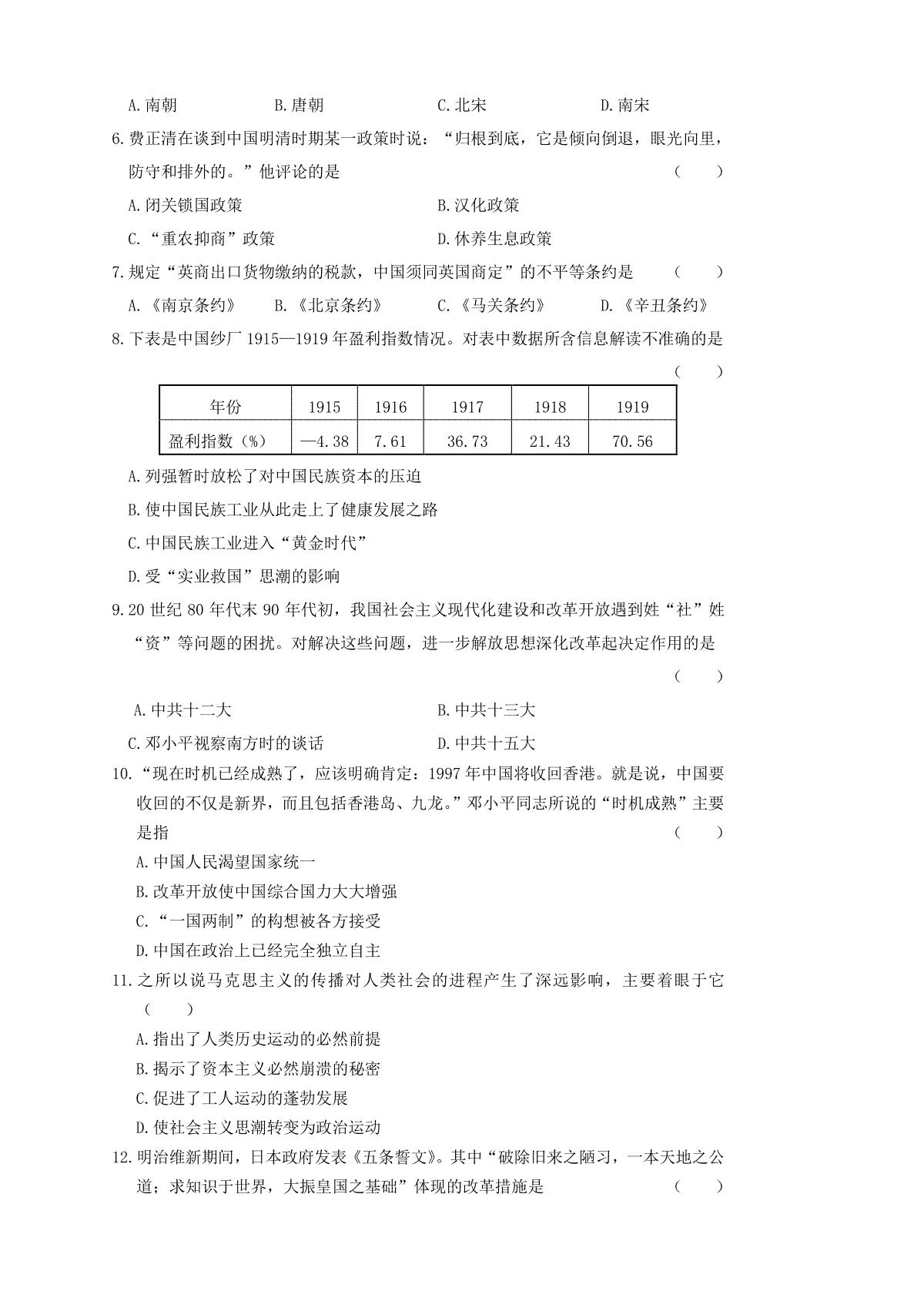 四川省宜宾市2016年中考历史真题试题(含答案)