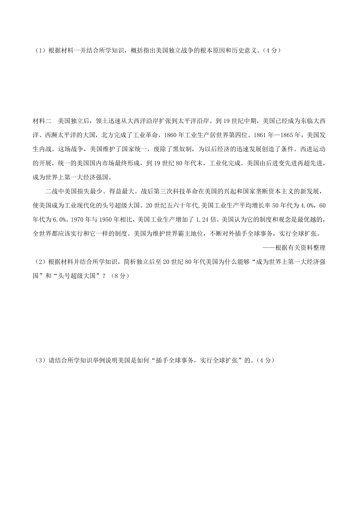 四川省南充市2016年中考文综(历史部分)真题试题(含答案)