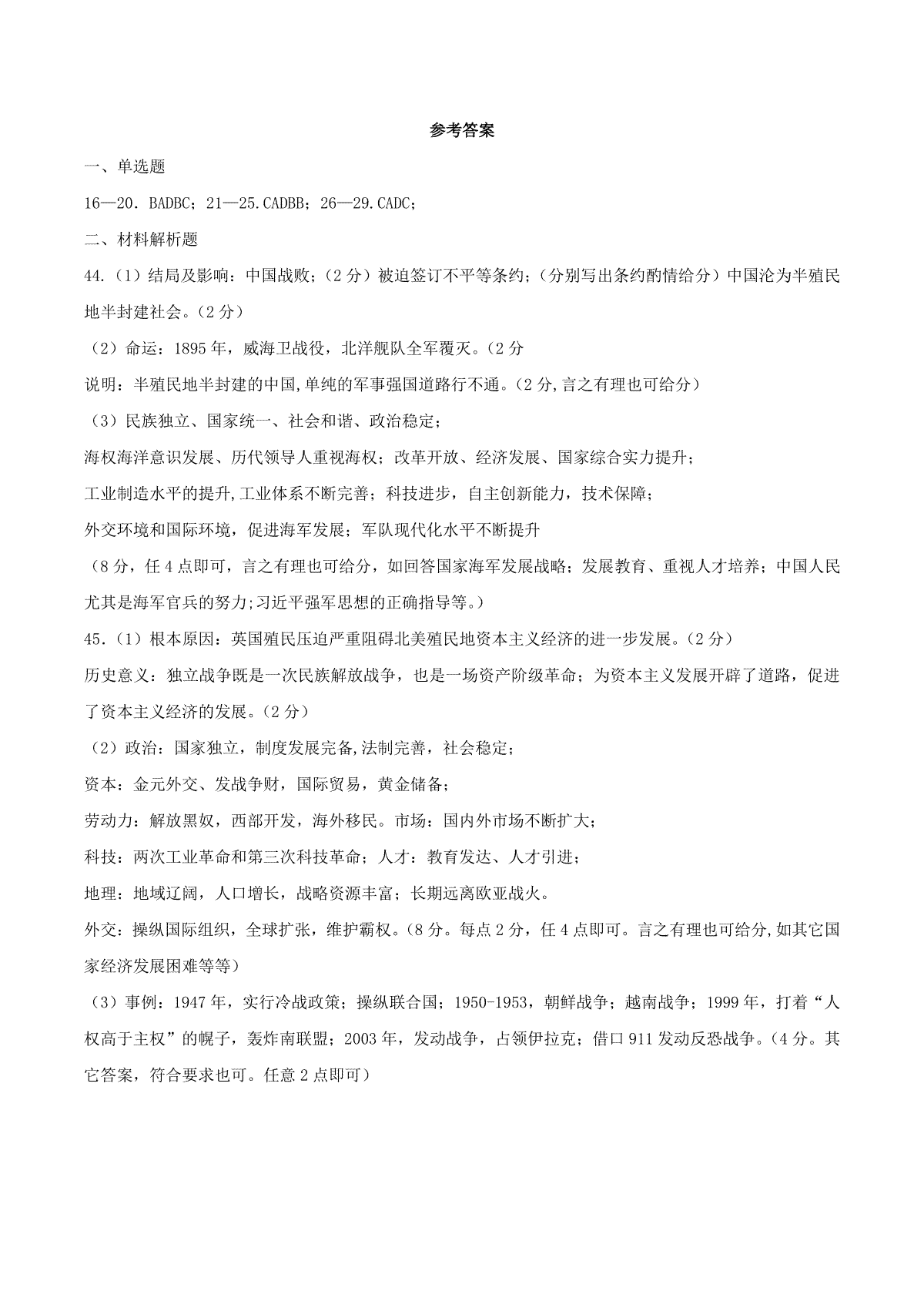 内蒙古赤峰市2016年中考历史真题试题(含答案)