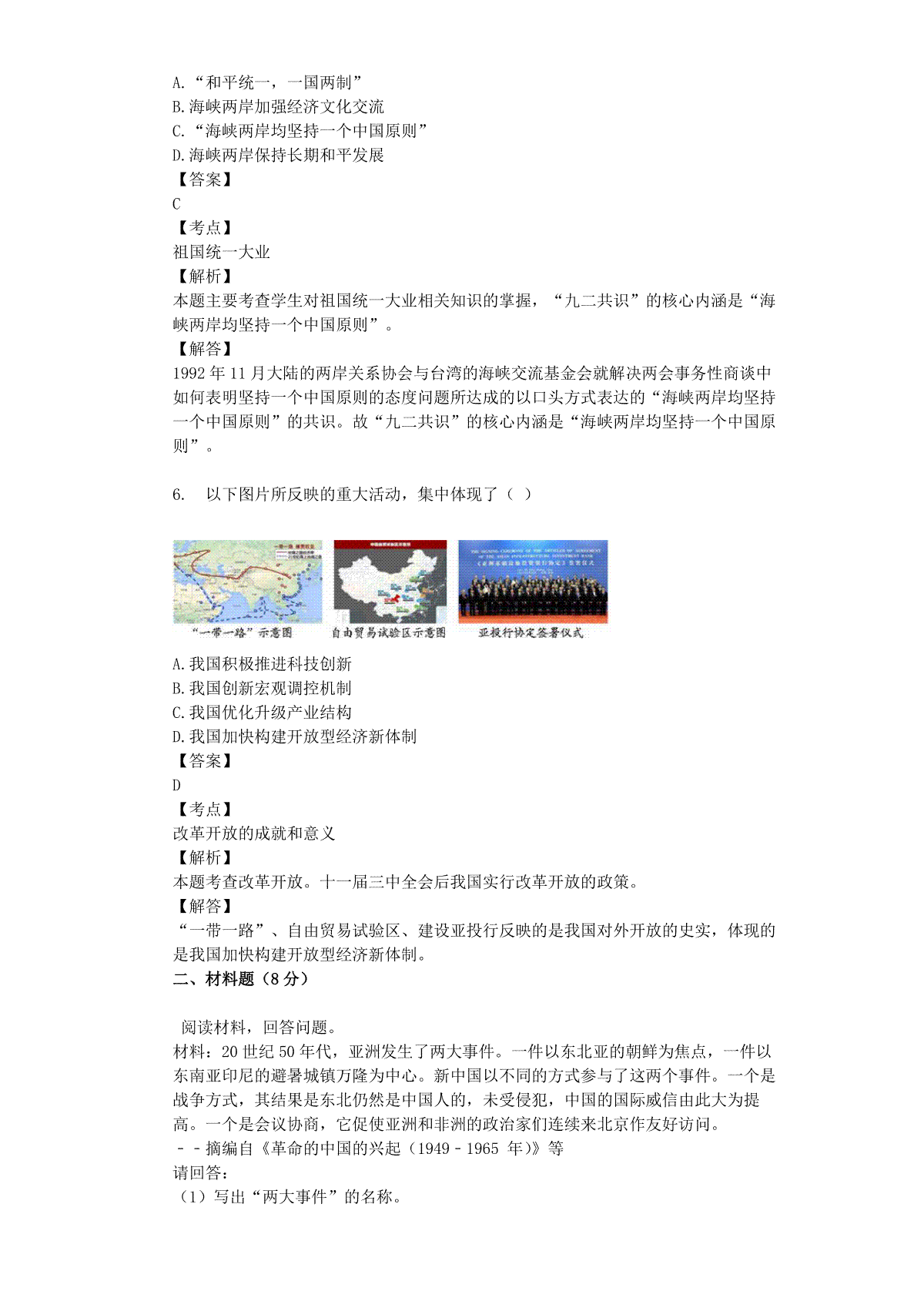 6.精品解析:四川省眉山市2020年中考历史试题(解析版)