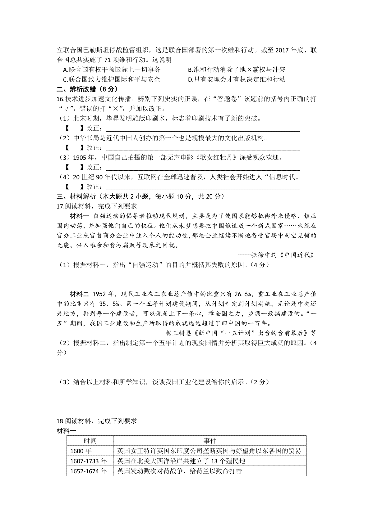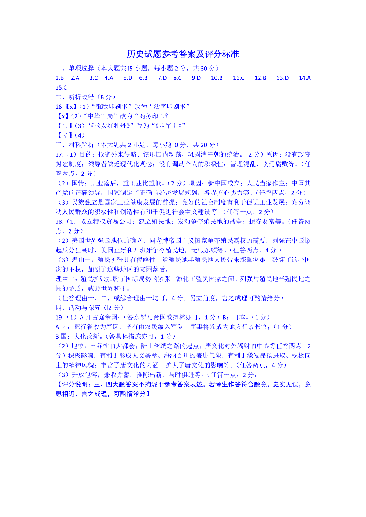 下载2020年安徽省历史中考试题及答案PDF格式或doc