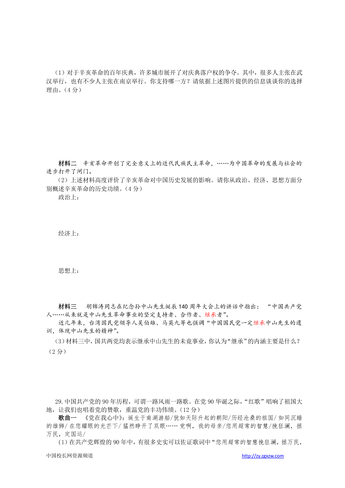 2020年安徽省历史中考试题及答案