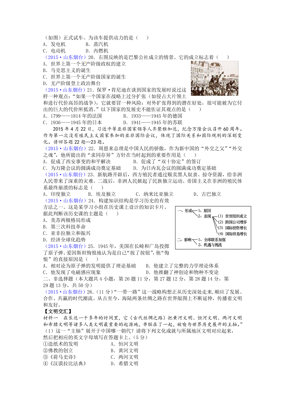 一、2015年山东烟台中考历史试卷及答案